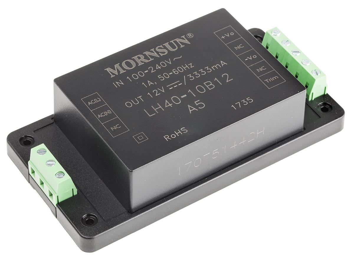 This is 40W AC-DC Converter 3.333A 12V dc manufactured by RS Pro. The manufacturer part number is 144-6273. Additionally, the product is supplied with 1 outputs. The product has +70°c maximum temperature. The product is available in chassis mount configuration. The typical product's weight is 310g. Furthermore, the product is 70mm wide. While its minimum temperature is -40°c. Its accurate length is 135mm. It is a highly efficient product with an 84 % @ 230 of high efficiency. The product comes in 33.5mm depth. Its input voltage is 264 v ac, 370 v dc. The package is a sort of encapsulated. Features a 12v dc output voltage. Feature 40w of power rating. It carries 3.333a output current.