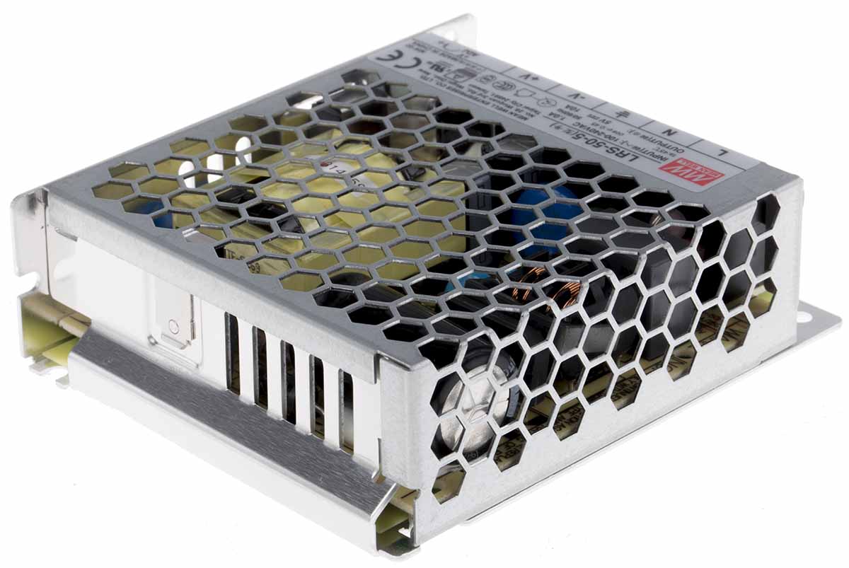 This is 50W Embedded Switch Mode Power Supply SMPS 10A 5V dc manufactured by Mean Well. The manufacturer part number is LRS-50-5. Additionally, the product is supplied with 1 outputs. The product has +70°c maximum temperature. The product is available in chassis mount configuration. The typical product's weight is 230g. While its minimum temperature is -30°c. Its accurate length is 99mm. Furthermore, the product is 82mm wide. The product comes in 30mm depth. Its input voltage is 85 → 264v ac. The package is a sort of enclosed. Features a 5v dc output voltage. Feature 50w of power rating. It carries 10a output current.
