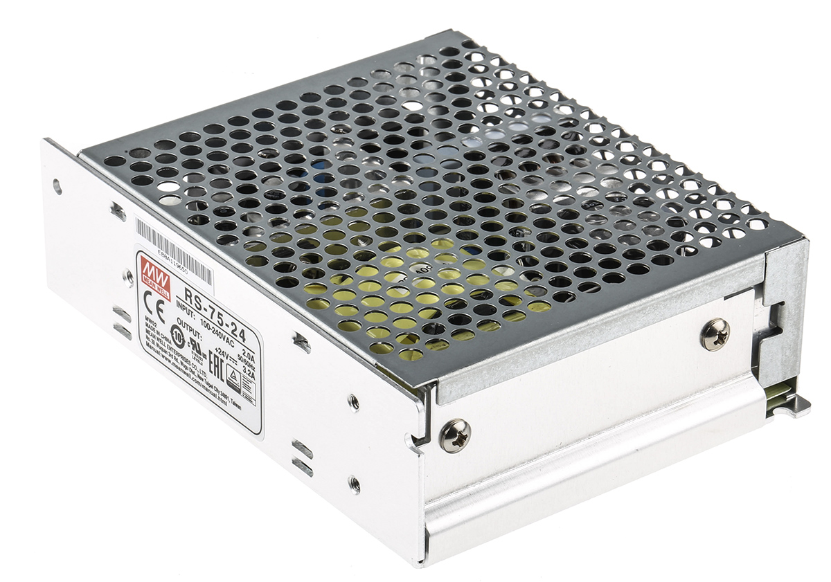 The RS-75-24 switching power supply distinguishes itself by combining wide-range input tolerance, a compact form, and robust protection schemes (OCP, OVP, SCP, OTP), all under the trusted MEAN WELL brand. It ensures dependable performance in industrial environments with variable supply conditions.
