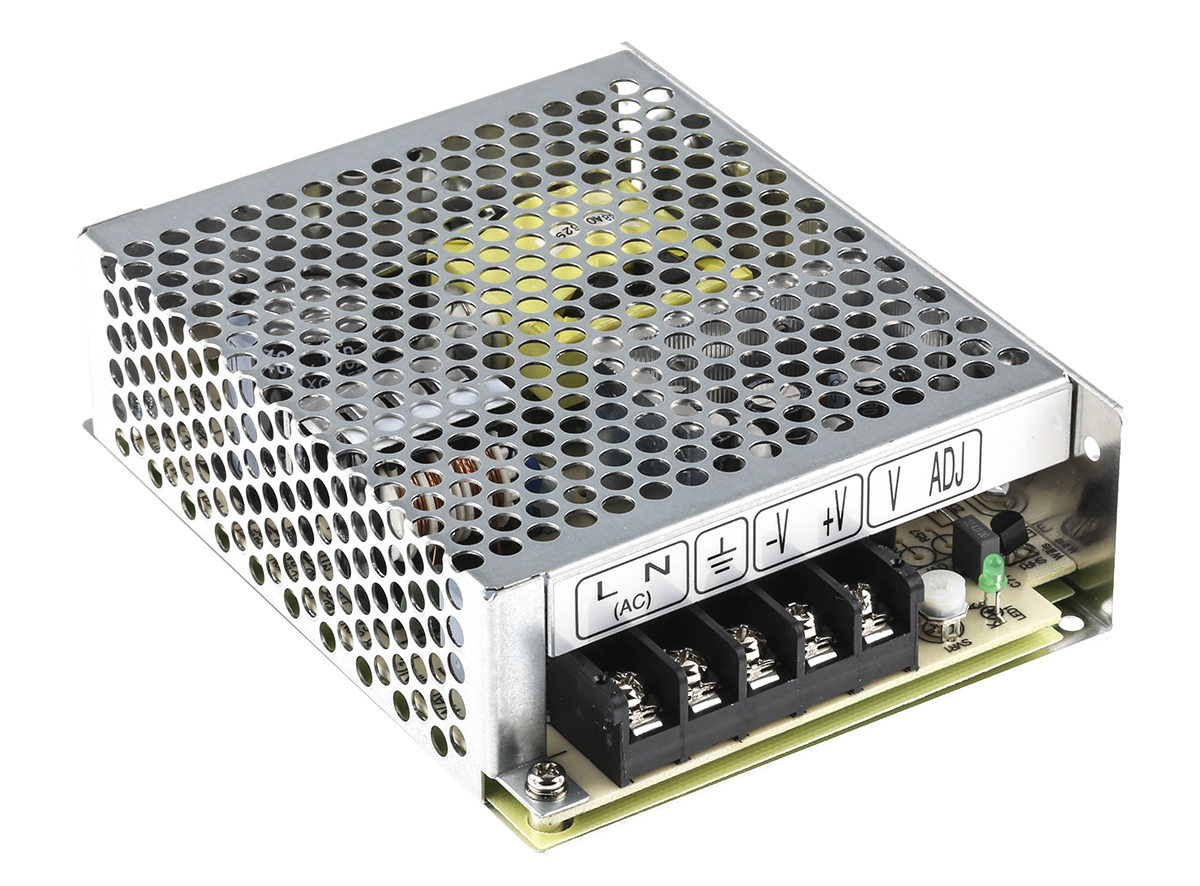 The RS-75-24 is a compact AC-to-DC switching power supply from MEAN WELL, delivering 24 V DC at up to 3.2 A, for a total output of 75 W. It supports a wide input range of 88–264 VAC and offers high efficiency (approximately 88.5%). Built for modular integration, it features multiple built-in protections and is suitable for industrial, control, or instrumentation systems that require reliable and efficient DC power.