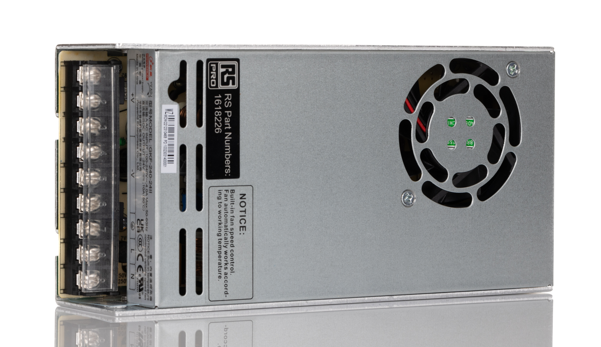 This is 240W Embedded Switch Mode Power Supply SMPS 10A 24V dc manufactured by RS Pro. The manufacturer part number is 161-8226. Additionally, the product is supplied with 1 outputs. The product has +75°c maximum temperature. It carries 10a output current. The product is available in chassis mount configuration. While its minimum temperature is -25°c. Its accurate length is 199mm. Furthermore, the product is 99mm wide. The product comes in 50mm depth. Its input voltage is 85 → 264v ac. The package is a sort of enclosed. Features a 24v dc output voltage. Feature 240w of power rating.