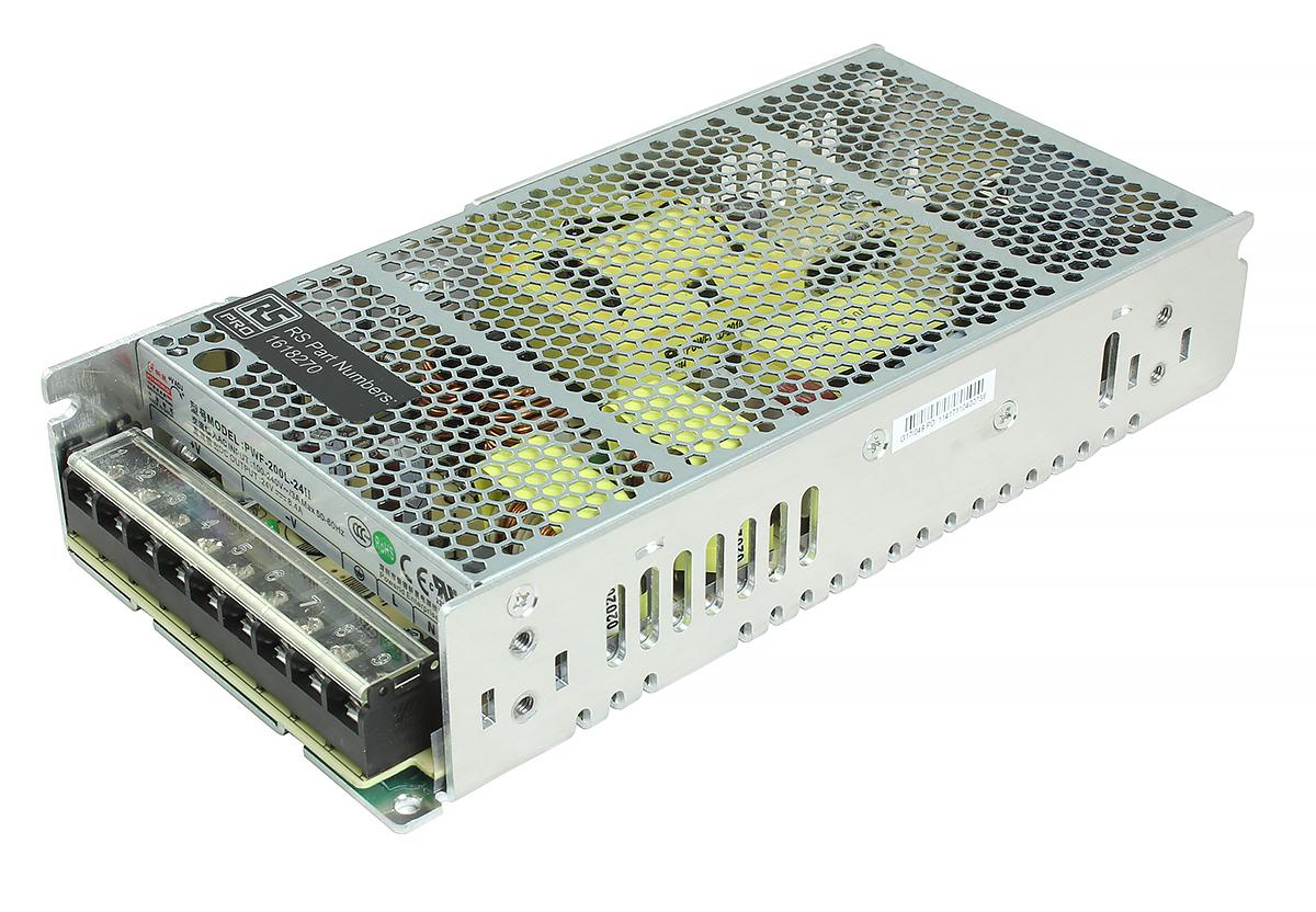 This is 200W Embedded Switch Mode Power Supply SMPS 4.2A 48V dc manufactured by RS Pro. The manufacturer part number is 161-8271. Additionally, the product is supplied with 1 outputs. The product has +70°c maximum temperature. It carries 4.2a output current. The product is available in chassis mount configuration. While its minimum temperature is -20°c. Its accurate length is 200mm. Furthermore, the product is 99mm wide. The product comes in 38mm depth. Its input voltage is 90 → 264v ac. The package is a sort of enclosed. Features a 48v dc output voltage. Feature 200w of power rating.