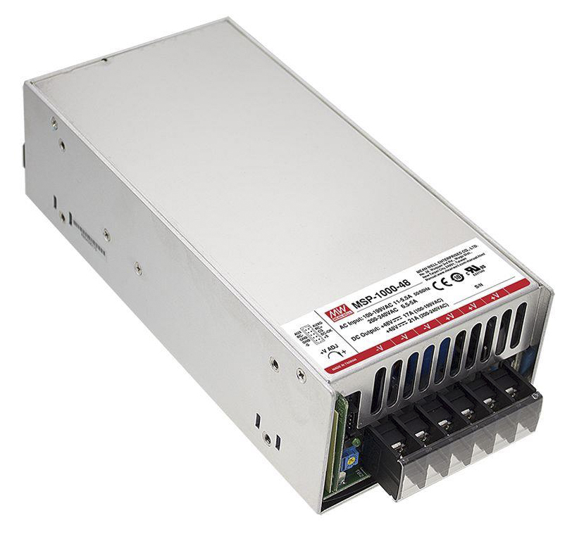 This is Power Supply Switch Mode 15V 960W manufactured by Mean Well. The manufacturer part number is MSP-1000-15. Additionally, the product is supplied with 1 outputs. The product has +70°c maximum temperature. The product is available in chassis mount configuration. The typical product's weight is 1.5kg. While its minimum temperature is -40°c. Its accurate length is 218mm. Furthermore, the product is 105mm wide. The product comes in 63.5mm depth. Its input voltage is 127 → 370 v dc, 90 → 264 v ac. The package is a sort of enclosed. Medical Approval - yes. Features a 15v dc output voltage. Feature 960w of power rating. It carries 64a output current.