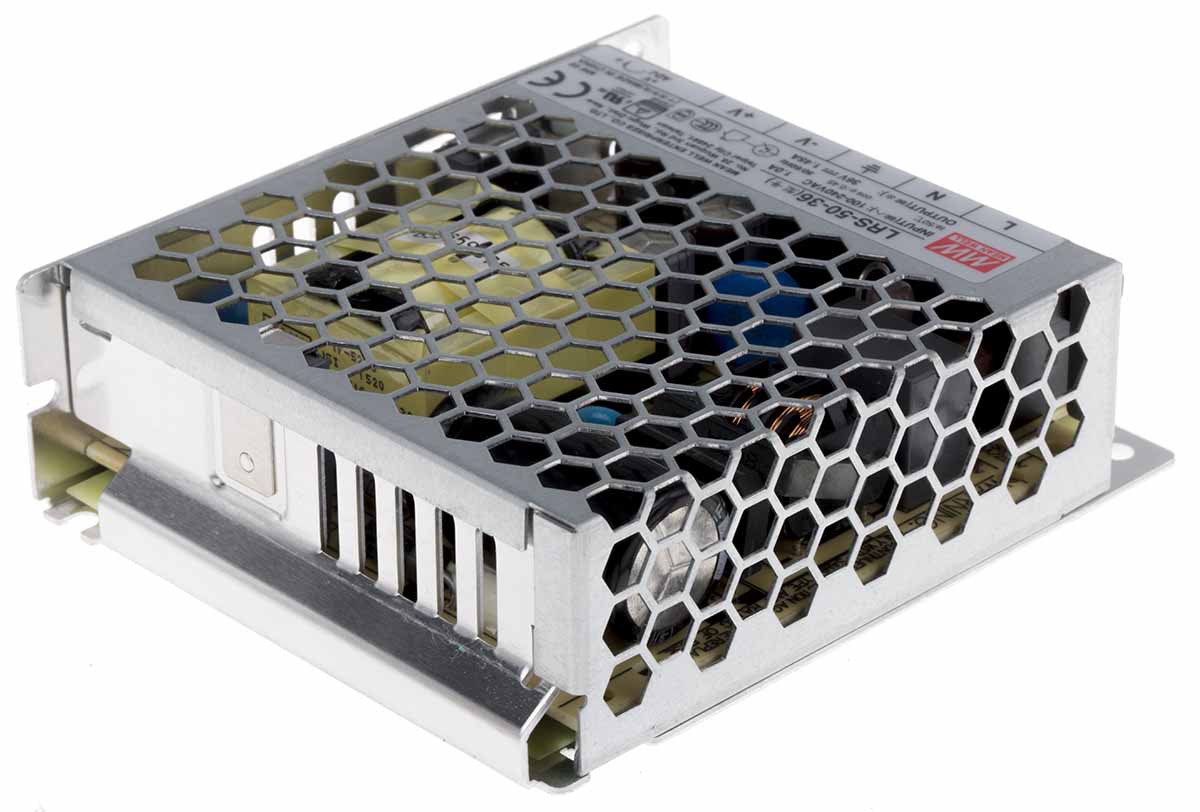 This is 52.2W Embedded Switch Mode Power Supply SMPS 1.45A 36V dc manufactured by Mean Well. The manufacturer part number is LRS-50-36. Additionally, the product is supplied with 1 outputs. The product has +70°c maximum temperature. The product is available in chassis mount configuration. The typical product's weight is 230g. It is a highly efficient product with an 89% of high efficiency. While its minimum temperature is -30°c. Its accurate length is 99mm. Furthermore, the product is 82mm wide. The product comes in 30mm depth. Its input voltage is 120 → 373 v dc, 85 → 264 v ac. The package is a sort of enclosed. Features a 36v dc output voltage. Feature 52.2w of power rating. It carries 1.45a output current.