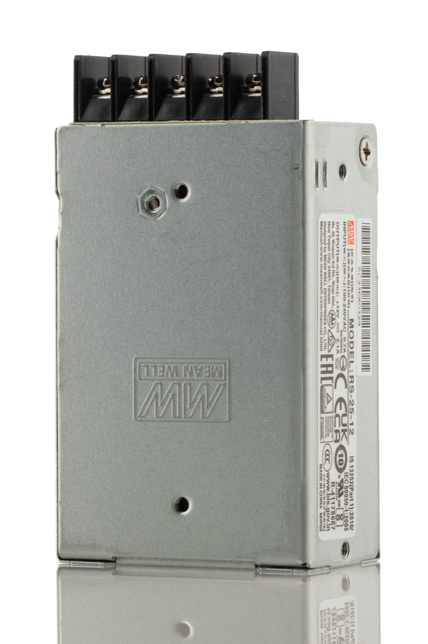 This is 25W Embedded Switch Mode Power Supply SMPS 2.1A 12V dc manufactured by Mean Well. The manufacturer part number is RS-25-12. Additionally, the product is supplied with 1 outputs. The product has +70°c maximum temperature. The product is available in chassis mount configuration. The typical product's weight is 200g. It is a highly efficient product with an 81.5% of high efficiency. While its minimum temperature is -20°c. Its accurate length is 78mm. Furthermore, the product is 51mm wide. The product comes in 28mm depth. Its input voltage is 125 → 373 v dc, 88 → 264 v ac. The package is a sort of enclosed. Features a 12v dc output voltage. Feature 25w of power rating. It carries 2.1a output current.