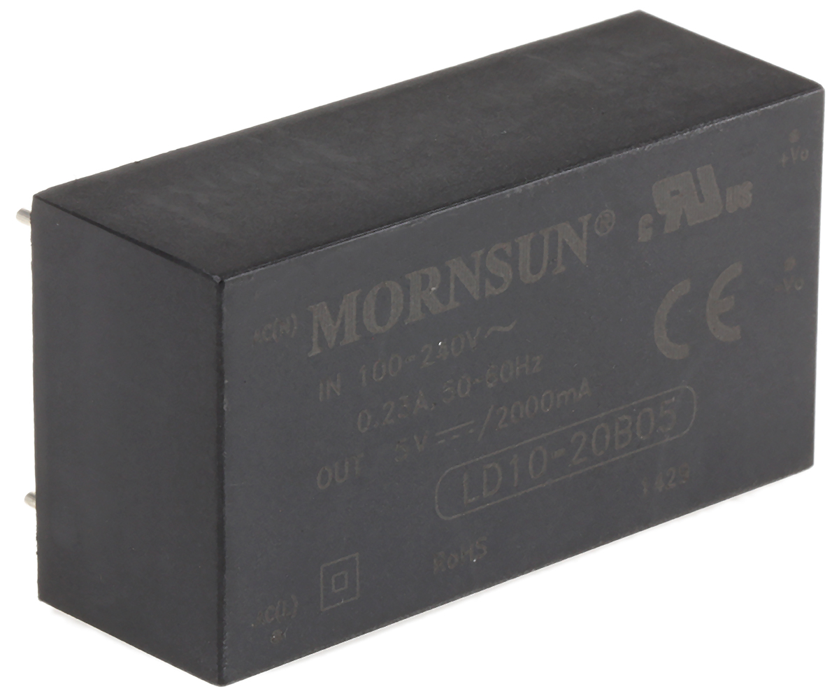 This is 10W Embedded Switch Mode Power Supply SMPS 2A 5V dc Medical Approved manufactured by RS Pro. The manufacturer part number is 671-6691. Additionally, the product is supplied with 1 outputs. The product has +70°c maximum temperature. The product is available in pcb mount configuration. The typical product's weight is 50g. While its minimum temperature is -25°c. Its accurate length is 53.5mm. Furthermore, the product is 28.5mm wide. The product comes in 19mm depth. Its input voltage is 120 → 370 v dc, 85 → 264 v ac. The package is a sort of encapsulated. Medical Approval - yes. Features a 5v dc output voltage. Feature 10w of power rating. It carries 2a output current.