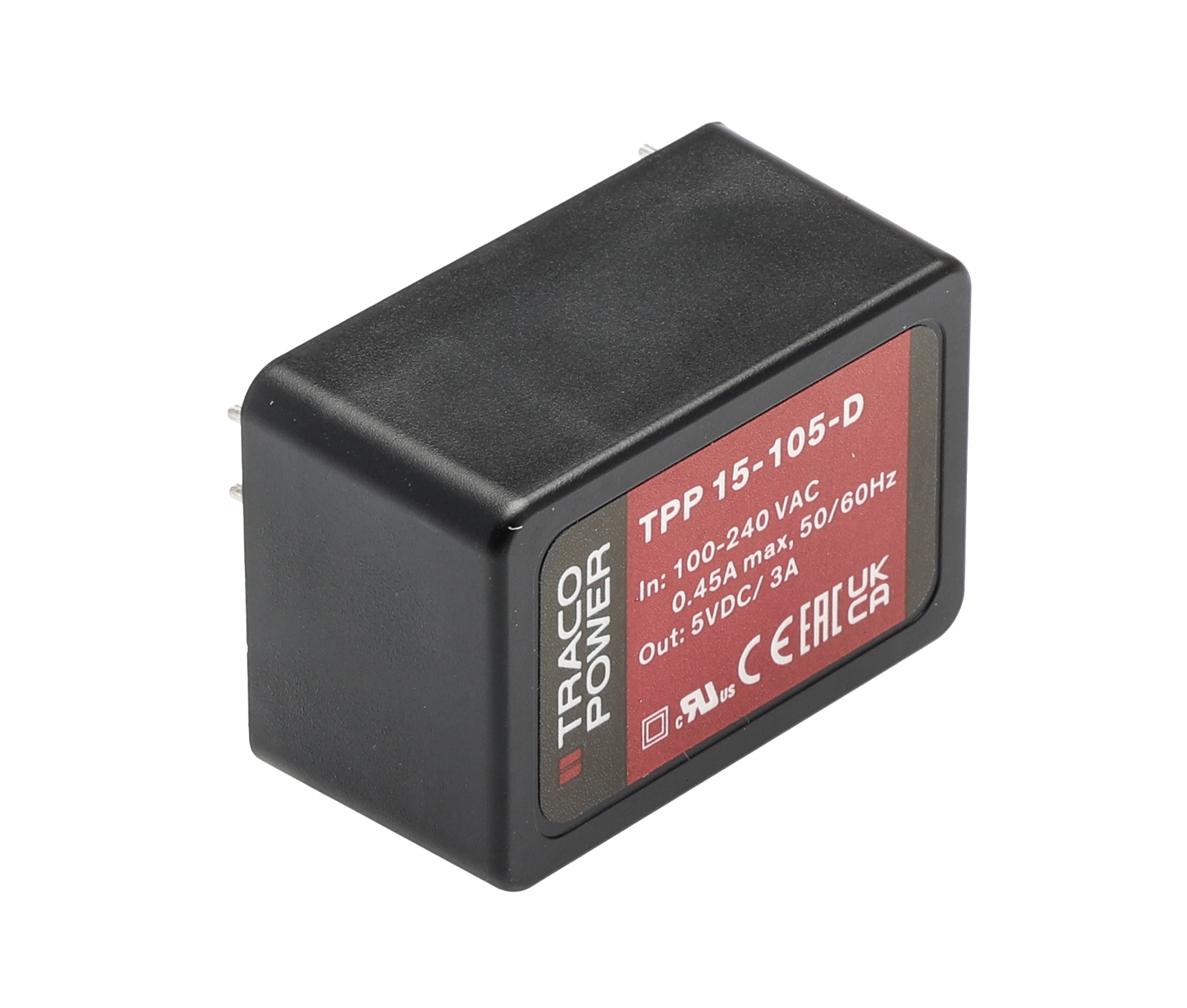 This is Embedded Switch Mode Power Supply SMPS manufactured by TRACOPOWER. The manufacturer part number is TPP 15-105-D. Additionally, the product is supplied with 1 outputs. The product has +85°c maximum temperature. The product is available in pcb mount configuration. The typical product's weight is 43g. It is a highly efficient product with an 86% of high efficiency. The product tpp 15-d, is a highly preferred choice for users. Its accurate length is 42mm. Furthermore, the product is 28.9mm wide. The product comes in 21.5mm depth. Its input voltage is 120 → 370 v dc, 85 → 264 v ac. The package is a sort of enclosed. Features a 5v dc output voltage. While its minimum temperature is -40°c. Feature 15w of power rating. It carries 3a output current. Medical Approval - yes.