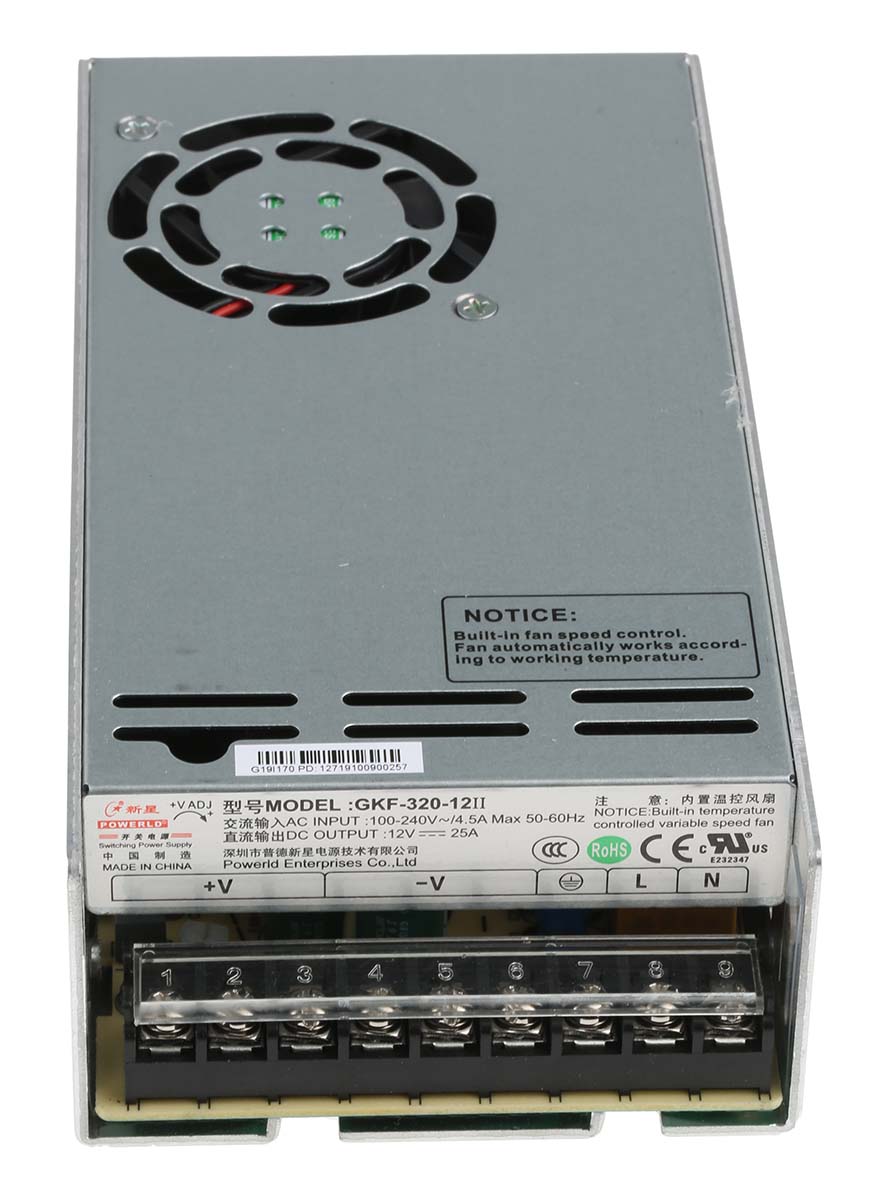 This is 300W Embedded Switch Mode Power Supply SMPS 25A 12V dc manufactured by RS Pro. The manufacturer part number is 161-8228. Additionally, the product is supplied with 1 outputs. The product has +65°c maximum temperature. It carries 25a output current. The product is available in pcb mount configuration. It is a highly efficient product with an 84.5% of high efficiency. While its minimum temperature is -20°c. Its accurate length is 199mm. Furthermore, the product is 99mm wide. The product comes in 50mm depth. Its input voltage is 120 → 370 v dc, 90 → 264 v ac. The package is a sort of enclosed. Features a 12v dc output voltage. Feature 300w of power rating.