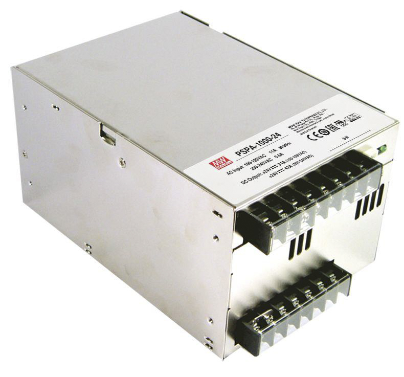 This is 960W Embedded Switch Mode Power Supply SMPS 80A 12V dc manufactured by Mean Well. The manufacturer part number is PSPA-1000-12. Additionally, the product is supplied with 1 outputs. The product has +70°c maximum temperature. The product is available in chassis mount configuration. The typical product's weight is 1.9kg. Furthermore, the product is 120mm wide. While its minimum temperature is -20°c. Its accurate length is 170mm. It is a highly efficient product with an 92% of high efficiency. The product comes in 93mm depth. Its input voltage is 127 → 370 v dc, 90 → 264 v ac. The package is a sort of enclosed. Features a 12v dc output voltage. Feature 960w of power rating. It carries 80a output current.