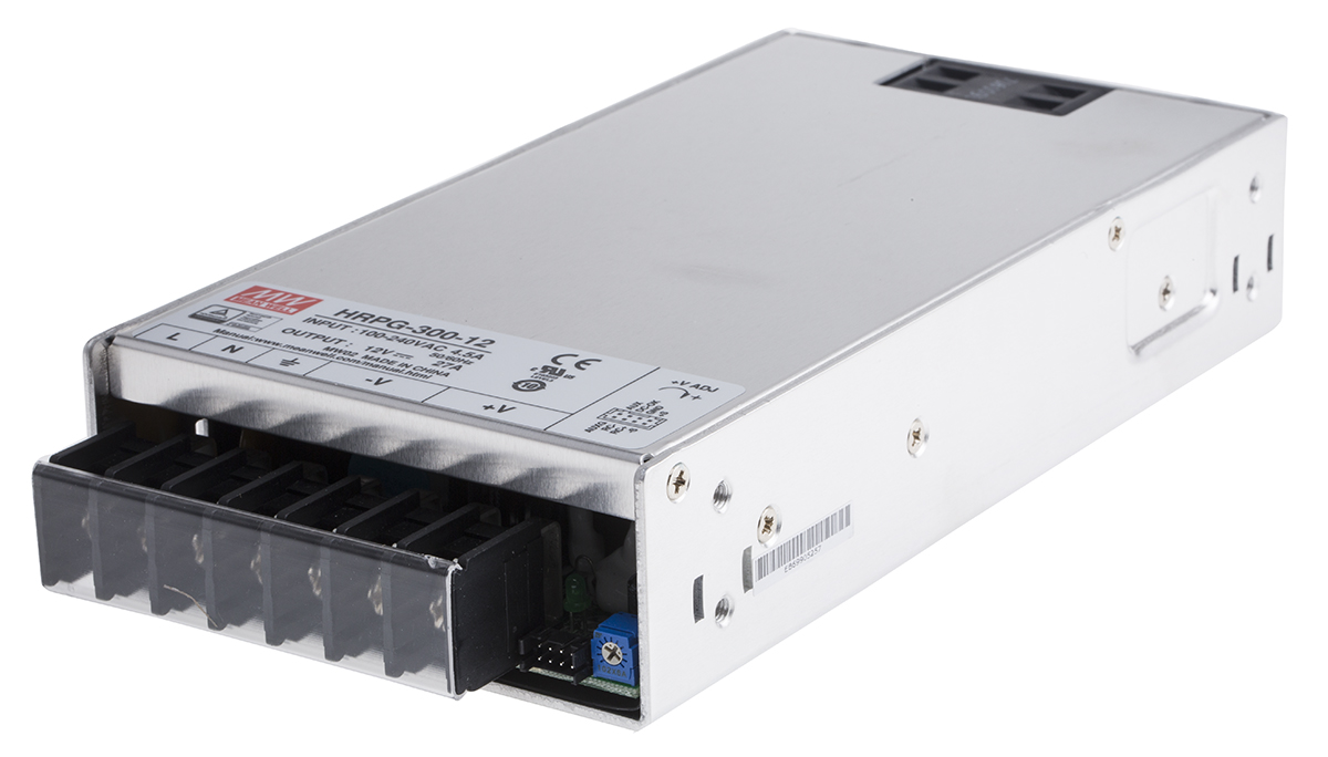 This is 324W Embedded Switch Mode Power Supply SMPS 27A 12V dc manufactured by Mean Well. The manufacturer part number is HRPG-300-12. Additionally, the product is supplied with 1 outputs. The product has +70°c maximum temperature. The product is available in chassis mount configuration. The typical product's weight is 950g. It is a highly efficient product with an 88% of high efficiency. While its minimum temperature is -40°c. Its accurate length is 199mm. Furthermore, the product is 105mm wide. The product comes in 41mm depth. Its input voltage is 120 → 370 v dc, 85 → 264 v ac. The package is a sort of enclosed. Features a 12v dc output voltage. Feature 324w of power rating. It carries 27a output current.