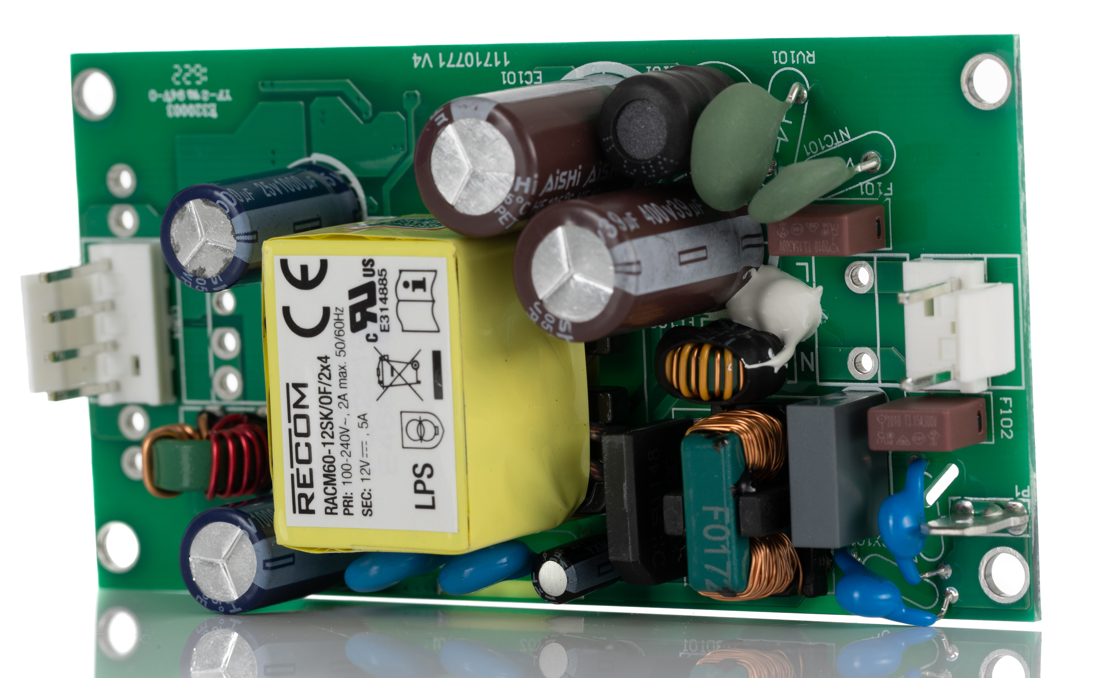 This is AC-DC Converter 5A 60W Open Frame manufactured by Recom. The manufacturer part number is RACM60-12SK/OF/2x4. Additionally, the product is supplied with 1 outputs. The product has +85°c maximum temperature. It carries 5a output current. The typical product's weight is 120g. Furthermore, the product is 53mm wide. While its minimum temperature is -40°c. Its accurate length is 101.6mm. It is a highly efficient product with an 90% of high efficiency. The product comes in 31.5mm depth. Its input voltage is 80 → 264v ac. The package is a sort of open frame. Medical Approval - yes. Features a 12v dc output voltage. Feature 60w of power rating.