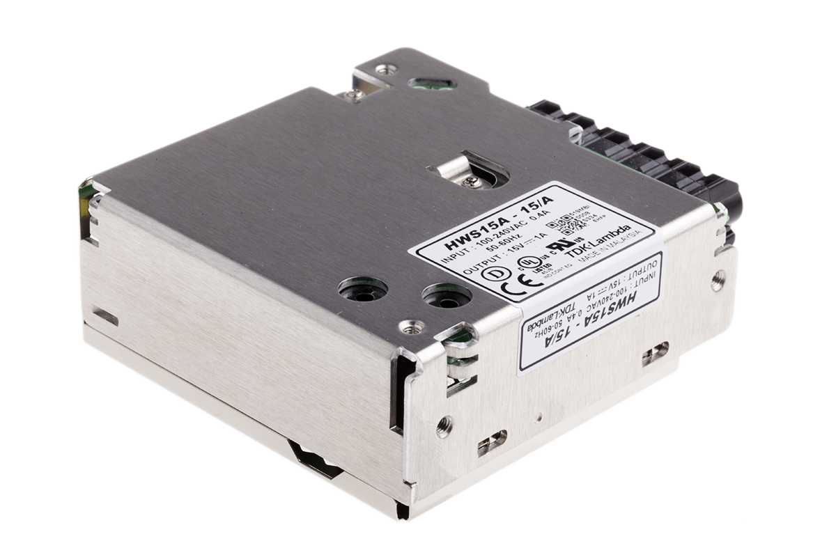 This is Embedded Switch Mode Power Supply SMPS 15V dc 1A 15W Enclosed manufactured by TDK-Lambda. The manufacturer part number is HWS15A-15/A. Additionally, the product is supplied with 1 outputs. The product has +50°c maximum temperature. The product is available in chassis mount configuration. The typical product's weight is 180g. Furthermore, the product is 26.5mm wide. While its minimum temperature is -10°c. Its accurate length is 82mm. It is a highly efficient product with an 85% of high efficiency. The product comes in 80mm depth. Its input voltage is 120 → 370 v dc, 85 → 265 v ac. The package is a sort of enclosed. Features a 15v dc output voltage. Feature 15w of power rating. It carries 1a output current.