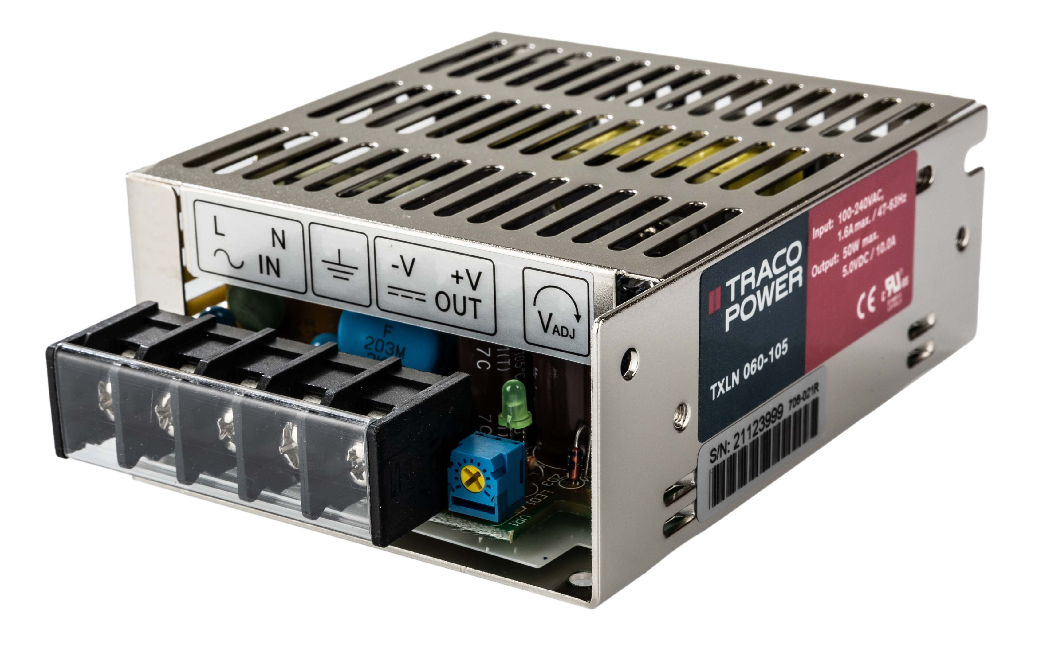 This is Switching Power Supply 5V dc 10A 50W 1 Output manufactured by TRACOPOWER. The manufacturer part number is TXLN 060-105. Additionally, the product is supplied with 1 outputs. The product has '+70°c maximum temperature. The product is available in chassis mount configuration. The typical product's weight is 340g. It is a highly efficient product with an 78% of high efficiency. The product txln, is a highly preferred choice for users. Its accurate length is 99mm. Furthermore, the product is 82mm wide. The product comes in 35mm depth. Its input voltage is 88 → 264v ac. The package is a sort of enclosed. Features a 5v dc output voltage. While its minimum temperature is -20°c. Feature 50w of power rating. It carries 10a output current.