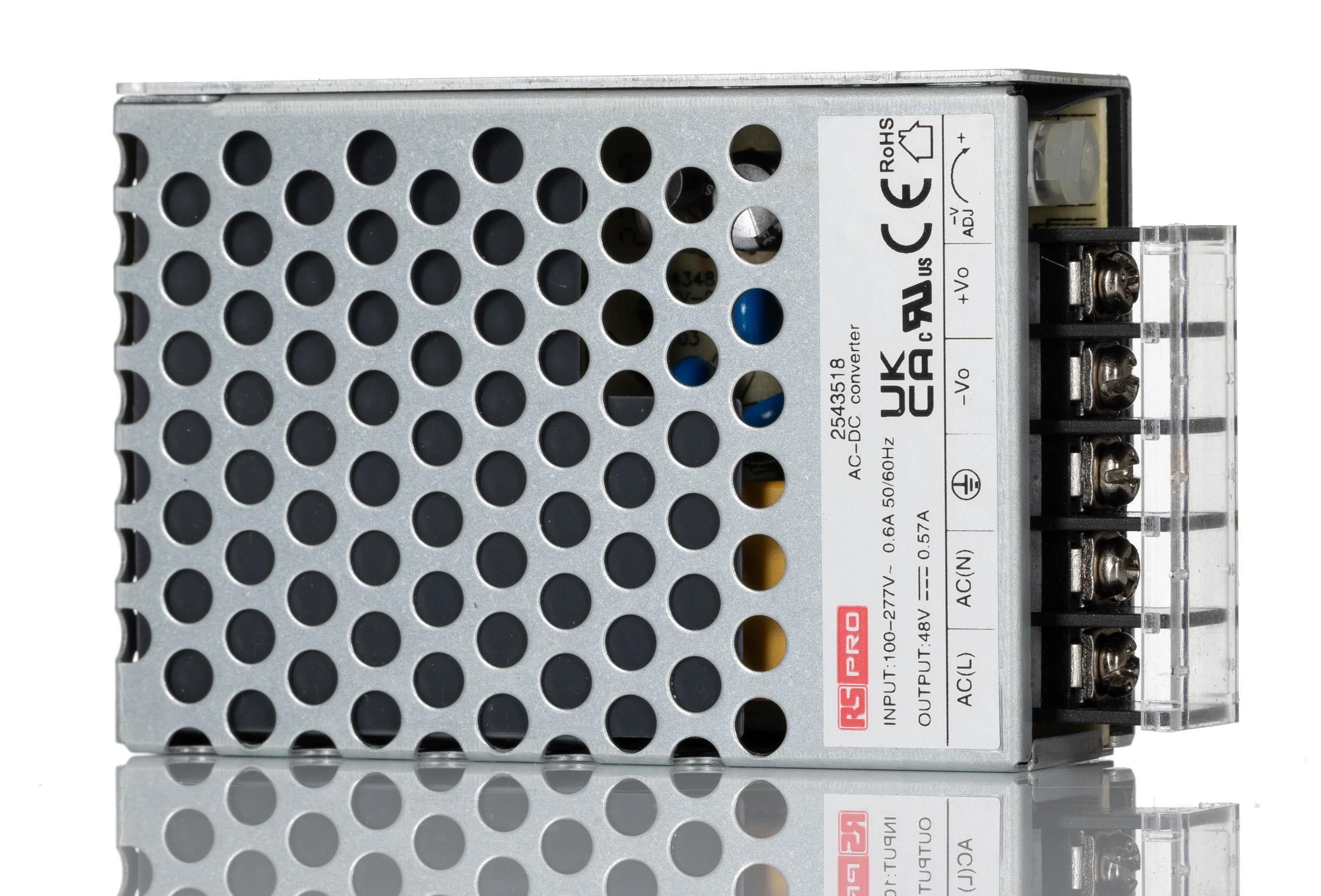 This is AC-DC Power Supply 48V dc 560mA 25W 1 Output 100 → 430V dc Input Voltage manufactured by RS PRO. The manufacturer part number is 254-3518. Additionally, the product is supplied with 1 outputs. The product has +70°c maximum temperature. The typical product's weight is 115g. Embedding Options: yes. It is a highly efficient product with an 0.88 of high efficiency. Its accurate length is 80mm. Furthermore, the product is 55mm wide. The product comes in 25mm depth. Its input voltage is 100 → 430v dc. The package is a sort of enclosed. Features a 48v dc output voltage. The product is available in chassis mount configuration. Feature 25w of power rating. It carries 560ma output current.