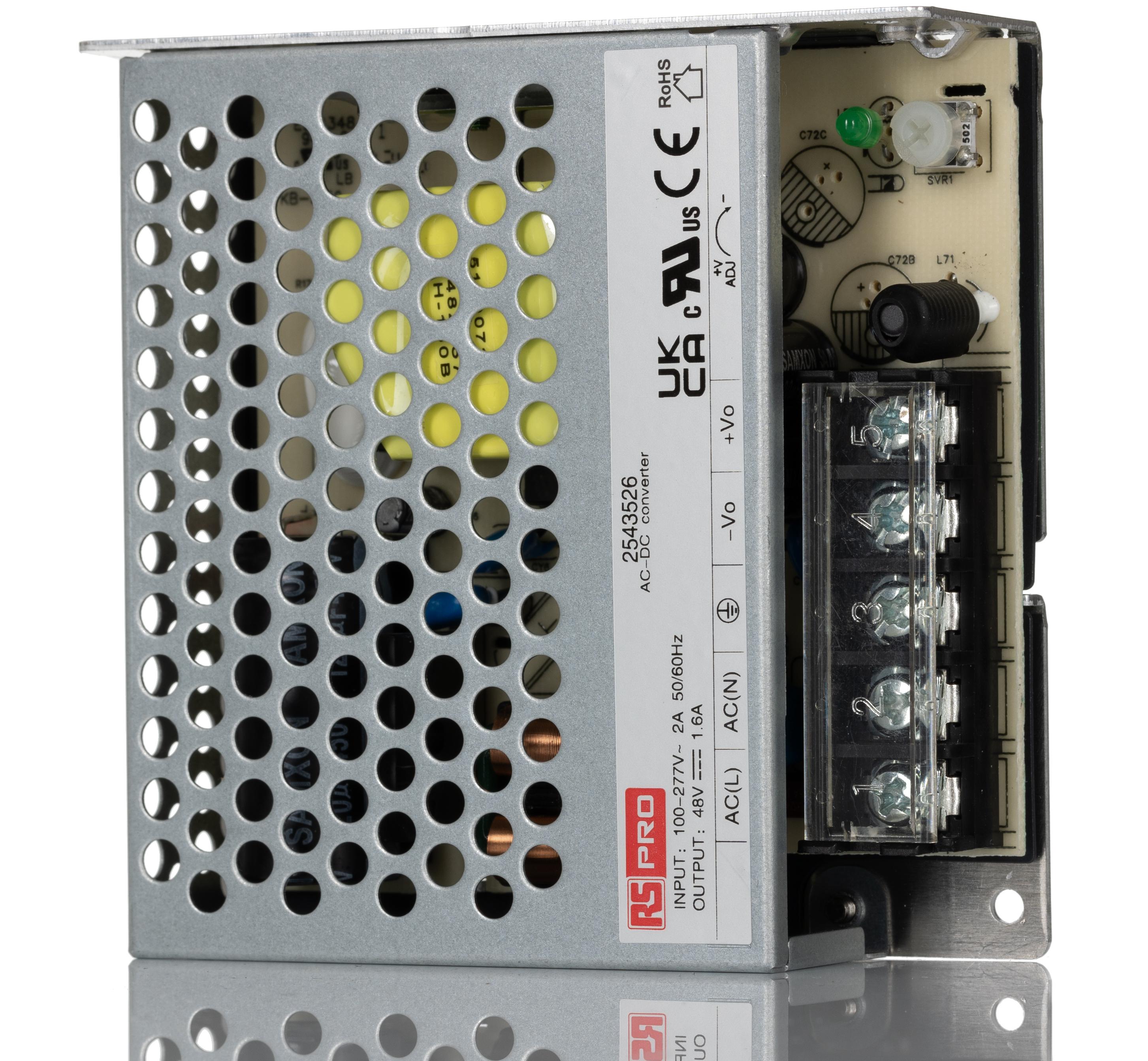 This is AC-DC Power Supply 48V dc 1.6A 75W 1 Output 120 → 430V dc Input Voltage manufactured by RS PRO. The manufacturer part number is 254-3526. Additionally, the product is supplied with 1 outputs. The product has +70°c maximum temperature. The typical product's weight is 220g. Embedding Options: yes. It is a highly efficient product with an 0.905 of high efficiency. Its accurate length is 99mm. Furthermore, the product is 97mm wide. The product comes in 30mm depth. Its input voltage is 120 → 430v dc. The package is a sort of enclosed. Features a 48v dc output voltage. The product is available in chassis mount configuration. Feature 75w of power rating. It carries 1.6a output current.