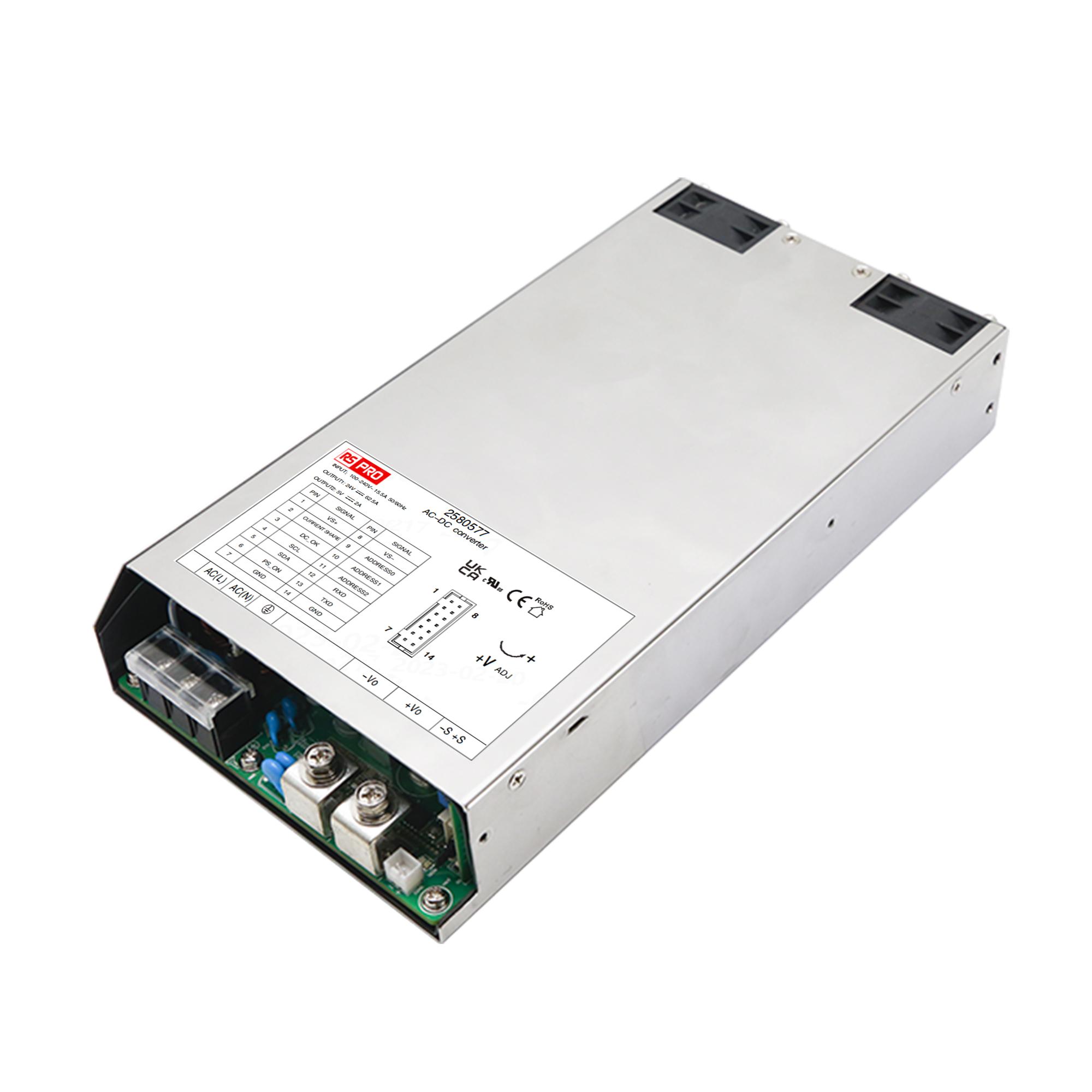 This is Embedded Switch Mode Power Supply (SMPS) 15V dc 100A 1.5kW 1 Output 120 → 370V dc Input Voltage manufactured by RS PRO. The manufacturer part number is 258-0576. Additionally, the product is supplied with 1 outputs. The product has +70°c maximum temperature. The typical product's weight is 1.25kg. Embedding Options: yes. It is a highly efficient product with an 0.92 of high efficiency. While its minimum temperature is -40°c. Its accurate length is 190mm. Furthermore, the product is 127mm wide. The product comes in 40.5mm depth. Its input voltage is 120 → 370v dc. The package is a sort of enclosed. Features a 15v dc output voltage. The product is available in chassis mount configuration. Feature 1.5kw of power rating. It carries 100a output current.