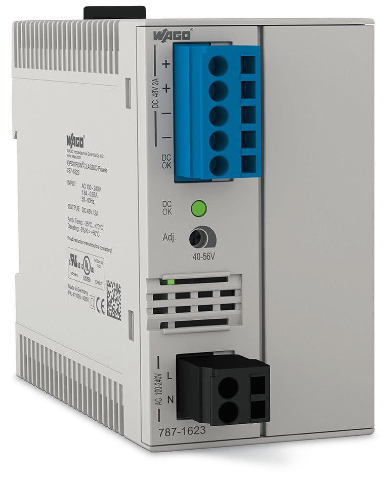 This is Switching Power Supply 48V dc 2A 96W 100 → 240V ac Input Voltage manufactured by WAGO. The manufacturer part number is 787-1623. Additionally, the product is supplied with 1 outputs. Its input voltage is 230v. It carries 2a output current. Features a 48v dc output voltage.