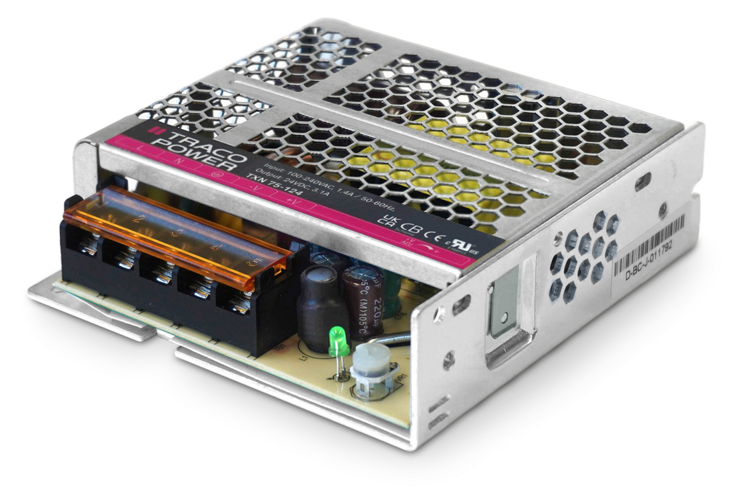 This is AC-DC Power Supply 12V dc 6A 72W 1 Output 90 → 264V ac Input Voltage manufactured by TRACOPOWER. The manufacturer part number is TXN 75-112. Additionally, the product is supplied with 1 outputs. It carries 6a output current. Its input voltage is 90 → 264v ac. Features a 12v dc output voltage. Feature 72w of power rating.