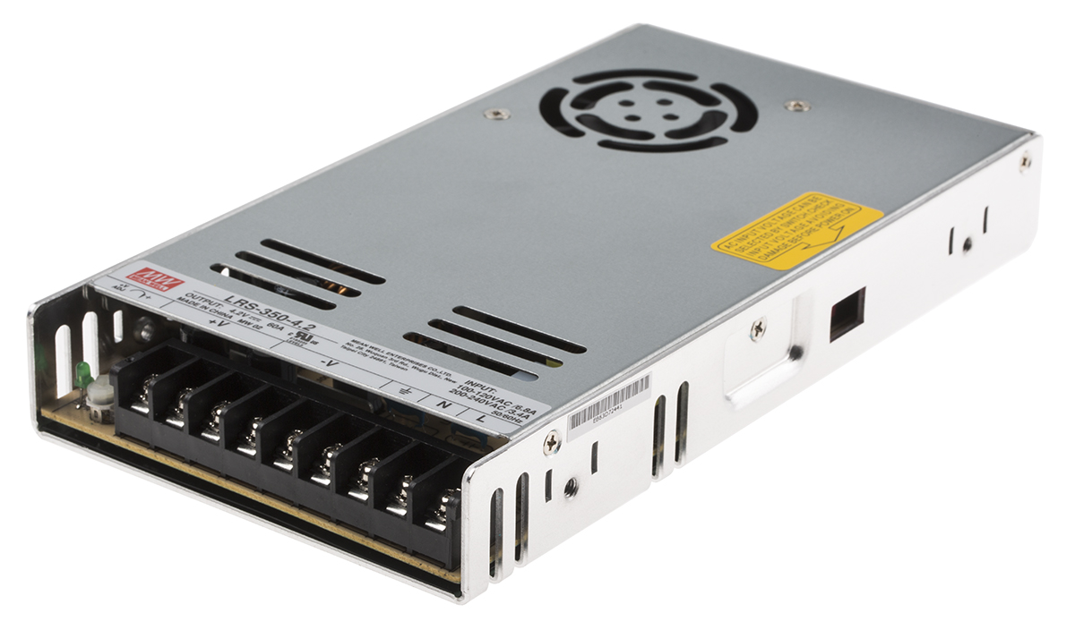 This is Switching Power Supply 4.2V dc 60A 252W 1 Output 180 → 264V ac Input Voltage manufactured by MEAN WELL. The manufacturer part number is LRS-350-4.2. Additionally, the product is supplied with 1 outputs. The product has +70°c maximum temperature. The product is available in chassis mount configuration. The typical product's weight is 760g. It is a highly efficient product with an 81.5% of high efficiency. While its minimum temperature is -25°c. Its accurate length is 215mm. Furthermore, the product is 115mm wide. The product comes in 30mm depth. Its input voltage is 180 → 264 v ac, 240 → 370 v dc, 90 → 132v ac. The package is a sort of enclosed. Features a 4.2v dc output voltage. Feature 252w of power rating. It carries 60a output current.