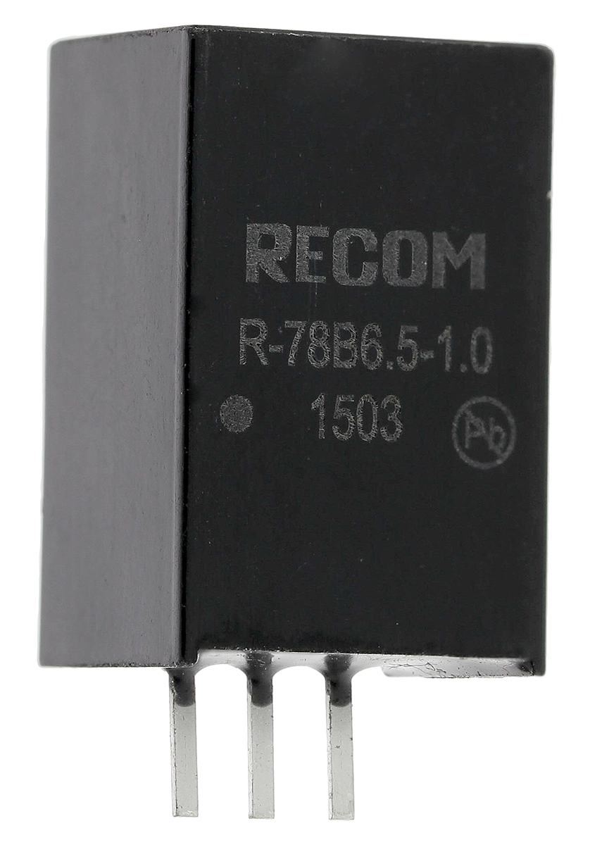 This is Switching Regulator 32V dc Input 6.5V dc Output 1A manufactured by Recom. The manufacturer part number is R-78B6.5-1.0. The product has +85°c maximum temperature. While its minimum temperature is -40°c. Furthermore, the product is 8.5mm wide. The MTBF values include 6584000h. It provides robust protection features, such as short circuit protection. Load Regulation - 0.4%. The product complies with all safety standards, such as rohs. It is a highly efficient product with an 94% of high efficiency. Its input voltage is 32v dc. Its switching frequency range is about 330khz . Additionally, the product is supplied with 1 outputs. Has a line regulation of 0.2%. The product is available in through hole configuration. It is shipped in sip package . Carries 15mv pk-pk ripple and noise. Its accurate length is 11.5mm. In addition, it has dc-dc type power signal conversion . The typical product's weight is 4g. It carries 1a output current. Applications Information involves dc-dc converter, filtering, step down. The product r-78b-1.0, is a highly preferred choice for users. The product comes in 17.5mm depth. Features a 6.5v dc output voltage. Feature 6.5w of power rating.