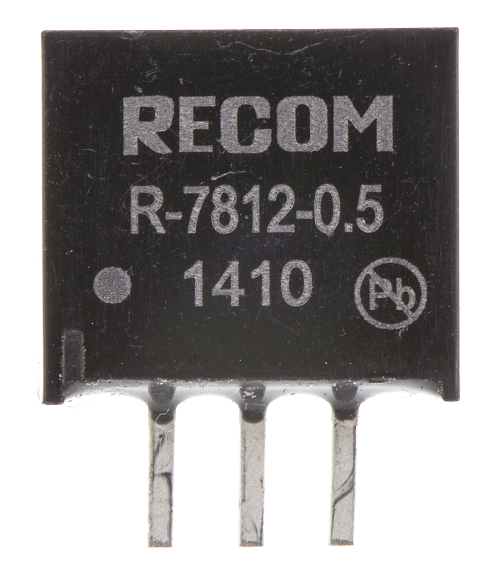 This is Switching Regulator 15 → 32V dc Input 12V dc Output 500mA manufactured by Recom. The manufacturer part number is R-7812-0.5. Additionally, the product is supplied with 1 outputs. Load Regulation - ±0.4%. It carries 500ma output current. It is a highly efficient product with an 97% of high efficiency. The typical product's weight is 1.9g. It is shipped in sip package . The product has +85°c maximum temperature. The product r-78-0.5, is a highly preferred choice for users. Carries 25mv pk-pk ripple and noise. Its accurate length is 11.5mm. Furthermore, the product is 7.55mm wide. The product comes in 10.2mm depth. The MTBF values include 21098000h. Features a 12v dc output voltage. While its minimum temperature is -40°c. The product is available in through hole configuration. Feature 2.5w of power rating. Its input voltage is 15 → 32v dc. Has a line regulation of ±0.2%.