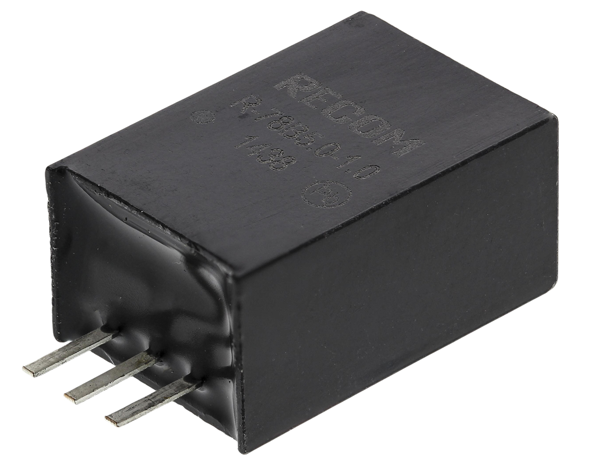 This is Switching Regulator 32V dc Input 5V dc Output 1A manufactured by Recom. The manufacturer part number is R-78B5.0-1.0. The product has +85°c maximum temperature. While its minimum temperature is -40°c. Furthermore, the product is 8.5mm wide. The MTBF values include 6584000h. It provides robust protection features, such as short circuit protection. Load Regulation - 0.2%. It is a highly efficient product with an 93% of high efficiency. Its input voltage is 6.5 → 28v dc. Additionally, the product is supplied with 1 outputs. Has a line regulation of 0.4%. The product is available in through hole configuration. It is shipped in sip package . Carries 15mv pk-pk ripple and noise. Its accurate length is 11.5mm. In addition, it has dc-dc type power signal conversion . The typical product's weight is 4g. It carries 1a output current. The product r-78b-1.0, is a highly preferred choice for users. The product comes in 17.5mm depth. Features a 5v dc output voltage. Feature 5w of power rating.