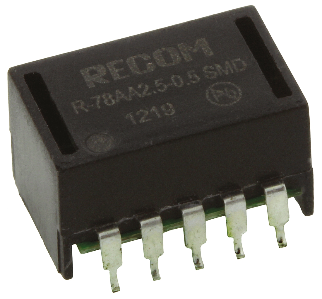 This is Switching Regulator 4.75 → 32V dc Input 2.5V dc Output 500mA manufactured by Recom. The manufacturer part number is R-78AA2.5-0.5SMD. Additionally, the product is supplied with 1 outputs. Load Regulation - 0.7%. It carries 500ma output current. It is a highly efficient product with an 87% of high efficiency. The typical product's weight is 2.7g. It is shipped in dip package . The product has +85°c maximum temperature. The product r-78aa-0.5, is a highly preferred choice for users. Carries 20mv pk-pk ripple and noise. Its accurate length is 15.3mm. Furthermore, the product is 9.6mm wide. The product comes in 8.8mm depth. The MTBF values include 29253000h. Features a 2.5v dc output voltage. While its minimum temperature is -40°c. The product is available in surface mount configuration. Its input voltage is 4.75 → 32v dc. Has a line regulation of 0.2%.