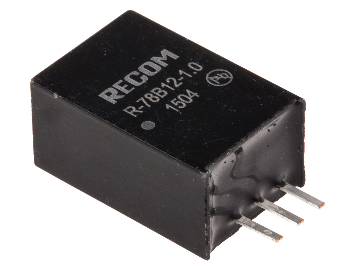 This is Switching Regulator 32V dc Input 12V dc Output 1A manufactured by Recom. The manufacturer part number is R-78B12-1.0. Additionally, the product is supplied with 1 outputs. Load Regulation - 0.1%. It carries 1a output current. It is a highly efficient product with an 96% of high efficiency. The typical product's weight is 4g. It is shipped in sip package . The product has +85°c maximum temperature. The product r-78b-1.0, is a highly preferred choice for users. Carries 25mv pk-pk ripple and noise. Its accurate length is 11.5mm. Furthermore, the product is 8.5mm wide. The product comes in 17.5mm depth. The MTBF values include 6584000h. Features a 12v dc output voltage. While its minimum temperature is -40°c. The product is available in through hole configuration. Feature 12w of power rating. Its input voltage is 32v dc. Has a line regulation of 0.25%.
