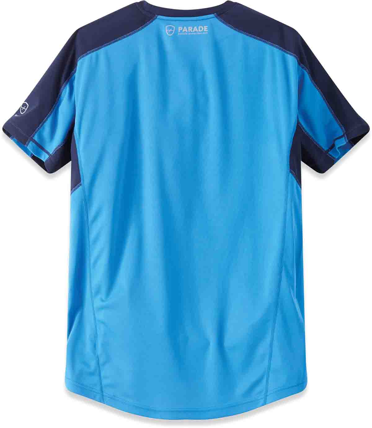 This is Blue Men's Polyester Short Sleeve T-Shirt UK- XXL EUR- XXL manufactured by Parade. The manufacturer part number is 17OYABE1452 XXL. Additionally, the product is designed with t-shirt Style. The product oyabe, is a highly preferred choice for users. It has a decent blue colour. The product is made from highly stable and reliable polyester. Its fitting is male . It has a Hi-Vis no . This short sleeve offers extreme flexibility and suit various settings. Its material offers a/an lightweight, breathable, quick drying properties . It is designed with a/an xxl size UK . It has a/an xxl size EUR .