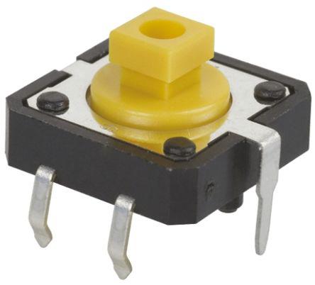 This is Yellow Plunger Tact Switch SPST-NO 50 mA@ 24 V dc 3mm manufactured by Omron. The manufacturer part number is B3F-4155. It has a 2.55 n of operating force. The actuator has an adorable yellow colour. The given dimensions of the product include 12 x 12 x 7.3mm. The rated contact current is 50 ma @ 24 v dc. In addition, the height is 7.3mm. The product carries plunger actuator. The actuator is a 3mm long. The contact is equipped with spst-no configuration. The terminal is a through hole type. The product is made from sturdy gold plated materials.