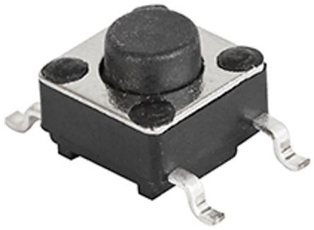 This is IP40 Black Button Tactile Switch SPST-NO 3.9mm Through Hole manufactured by Schurter. The manufacturer part number is 1301.9308. It has a 1.6 n of operating force. The actuator has an adorable black colour. The given dimensions of the product include 6 x 6 x 2.4mm. The product is available in through hole configuration. It is IP rated with ip40. Whereas, the minimum operating temperature of the product is -20°c. Moreover, the product has a nominal 12v dc voltage rating. In addition, the height is 2.4mm. The product has -20 → +70°c of operating temperature range. Furthermore, the product is 6mm wide. Its accurate length is 6mm. The product carries button actuator. The contact is equipped with single pole single throw (spst) configuration. The actuator is a 3.9mm long. The product also provide mechanical stability with >100000operations. It provides momentary switch operation. It has a maximum operating temperature of +70°c. The terminal is a solder type. The product is made from sturdy cuzn+cu+ag materials.