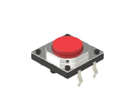 This is Red Cap Tact Switch SPST-NO 50 mA Snap-In manufactured by Alps. The manufacturer part number is SKQEADA010. It has a 2.55 n of operating force. The actuator has an adorable red colour. The given dimensions of the product include 12 x 12mm. The product is available in snap-in configuration. Moreover, the product has a nominal 12v dc voltage rating. The rated contact current is 50 ma. Whereas, the minimum operating temperature of the product is -40°c. The product has -40 → +90°c of operating temperature range. The contact is equipped with spst-no configuration. Furthermore, the product is 12mm wide. Its accurate length is 12mm. The product carries cap actuator. It has a maximum operating temperature of +90°c. The terminal is a pc pin type. It provides momentary switch operation.