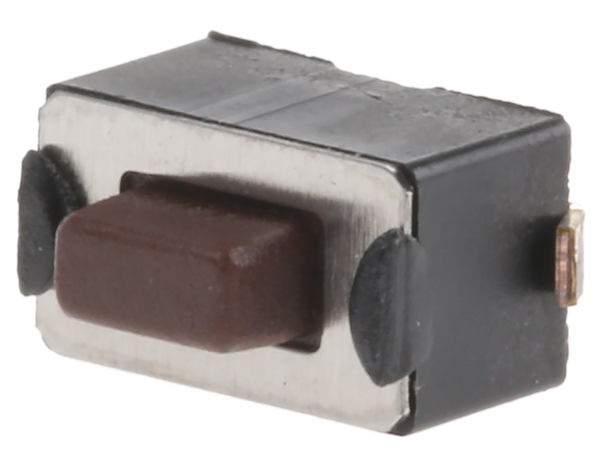 This is Brown Button Tactile Switch SPST-NO 50 mA @ 12 V dc 1.5mm manufactured by APEM. The manufacturer part number is DTSM32NV. It has a 1.57 n of operating force. The actuator has an adorable brown colour. The given dimensions of the product include 6 x 3.5 x 5mm. Moreover, the product has a nominal 12v dc voltage rating. The rated contact current is 50 ma @ 12 v dc. Whereas, the minimum operating temperature of the product is -25°c. The product has -25 °c → +70°c of operating temperature range. In addition, the height is 5mm. Furthermore, the product is 3.5mm wide. Its accurate length is 6mm. The product carries button actuator. The actuator is a 1.5mm long. The contact is equipped with spst configuration. It has a maximum operating temperature of +70°c. The terminal is a surface mount type.
