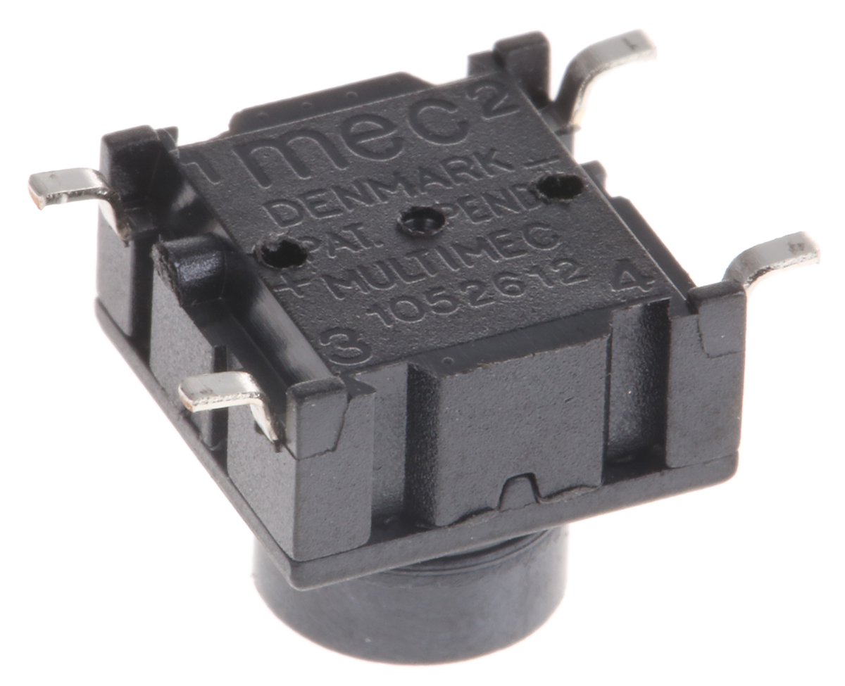 This is Black Button Tactile Switch SP 50 mA @ 24 V dc 4.4mm manufactured by MEC. The manufacturer part number is 3ESH9-09.5. The product carries button actuator. The actuator has an adorable black colour. The given dimensions of the product include 10.1 x 10.1mm. The product is available in pcb configuration. It is IP rated with ip67. The rated contact current is 50 ma @ 24 v dc. Whereas, the minimum operating temperature of the product is -40°c. Moreover, the product has a nominal 24v dc voltage rating. In addition, the height is 9.5mm. The product has -40 → +160°c of operating temperature range. Furthermore, the product is 10.1mm wide. Its accurate length is 10.1mm. The contact is equipped with spst configuration. The actuator is a 4.4mm long. The product also provide mechanical stability with 10000000operations. It provides momentary switch operation. It has a maximum operating temperature of +160°c. The terminal is a surface mount type. Illumination Option no.