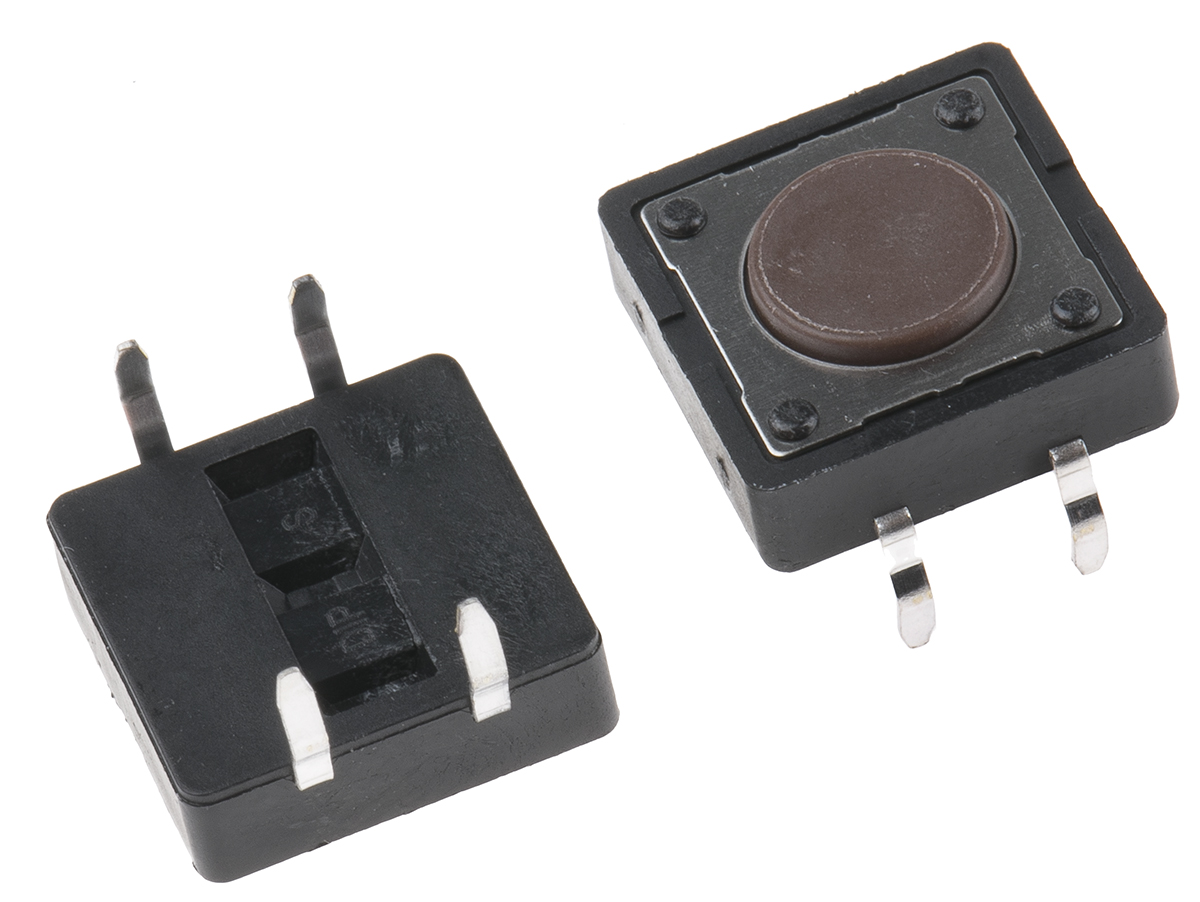 This is Brown Button Tactile Switch SPST 50 mA @ 12 V dc 0mm manufactured by APEM. The manufacturer part number is DTS21NV. It provides momentary switch operation. It has a 1.57 n of operating force. The actuator has an adorable brown colour. Illumination Option no. Moreover, the product has a nominal 12v dc voltage rating. The rated contact current is 50 ma @ 12 v dc. The contact is equipped with spst configuration. In addition, the height is 4.3mm. Furthermore, the product is 12mm wide. Its accurate length is 12mm. The product carries button actuator. The actuator is a 0mm long. The product is made from sturdy silver plated phosphor bronze materials. The terminal is a through hole type. The given dimensions of the product include 12 x 12 x 4.3mm.