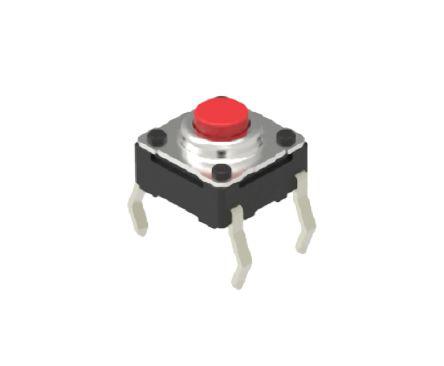 This is Red Button Tactile Switch SPST-NO 50 mA 0.7mm Snap-In manufactured by Alps Electric. The manufacturer part number is SKHWARA010. It has a 2.55 n of operating force. The actuator has an adorable red colour. The given dimensions of the product include 6 x 6mm. The product is available in snap-in configuration. Moreover, the product has a nominal 12v dc voltage rating. The rated contact current is 50 ma. Whereas, the minimum operating temperature of the product is -40°c. The product has -40 → +90°c of operating temperature range. In addition, the height is 5mm. Furthermore, the product is 6mm wide. Its accurate length is 6mm. The product carries button actuator. The actuator is a 0.7mm long. The contact is equipped with single pole single throw (spst) configuration. It has a maximum operating temperature of +90°c. The terminal is a pc pin type. It provides momentary switch operation.