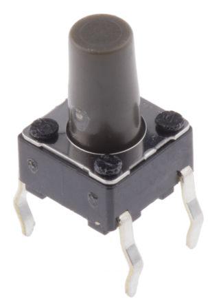 This is Grey Stem Tactile Switch SPST-NO 50 mA @ 12 V dc 9.5mm manufactured by Alps Electric. The manufacturer part number is SKHHAPA010. It has a 1.57 n of operating force. The actuator has an adorable grey colour. The given dimensions of the product include 6 x 6 x 9.5mm. The product has -30 → +85°c of operating temperature range. The rated contact current is 50 ma @ 12 v dc. Whereas, the minimum operating temperature of the product is -30°c. In addition, the height is 9.5mm. The product carries stem actuator. The actuator is a 9.5mm long. The product also provide mechanical stability with 500000cycles. The contact is equipped with single pole single throw (spst) configuration. It has a maximum operating temperature of +85°c. The terminal is a through hole type. It provides momentary switch operation.
