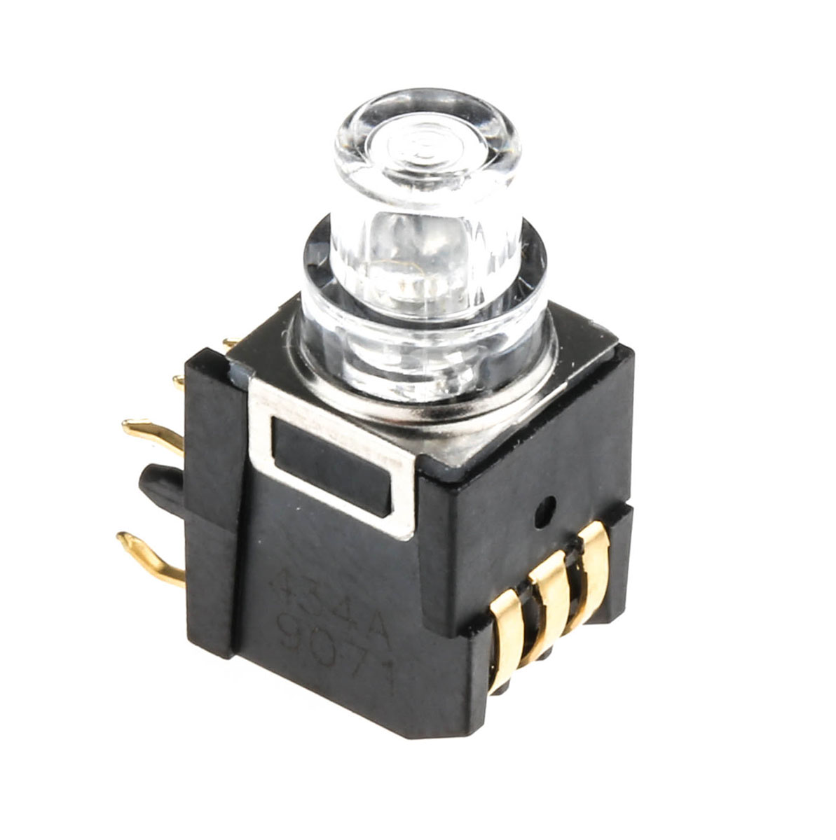 This is Transparent Button Tactile Switch SPDT-NO/NC 100 mA @ 32 V dc 4mm manufactured by C & K. The manufacturer part number is K5V1 GN 43 T. It provides momentary switch operation. It has a 4 n of operating force. The actuator has an adorable green colour. Illumination Option yes. Moreover, the product has a nominal 32v dc voltage rating. The rated contact current is 100 ma @ 32 v dc. Whereas, the minimum operating temperature of the product is -40°c. The contact is equipped with spdt configuration. In addition, the height is 12.4mm. Furthermore, the product is 8mm wide. Its accurate length is 9.45mm. The product carries button actuator. The actuator is a 4mm long. The product also provide mechanical stability with 25000operations. The product is made from sturdy gold over nickel plated materials. It has a maximum operating temperature of +85°c. The terminal is a through hole type. The given dimensions of the product include 9.45 x 8 x 12.40mm.