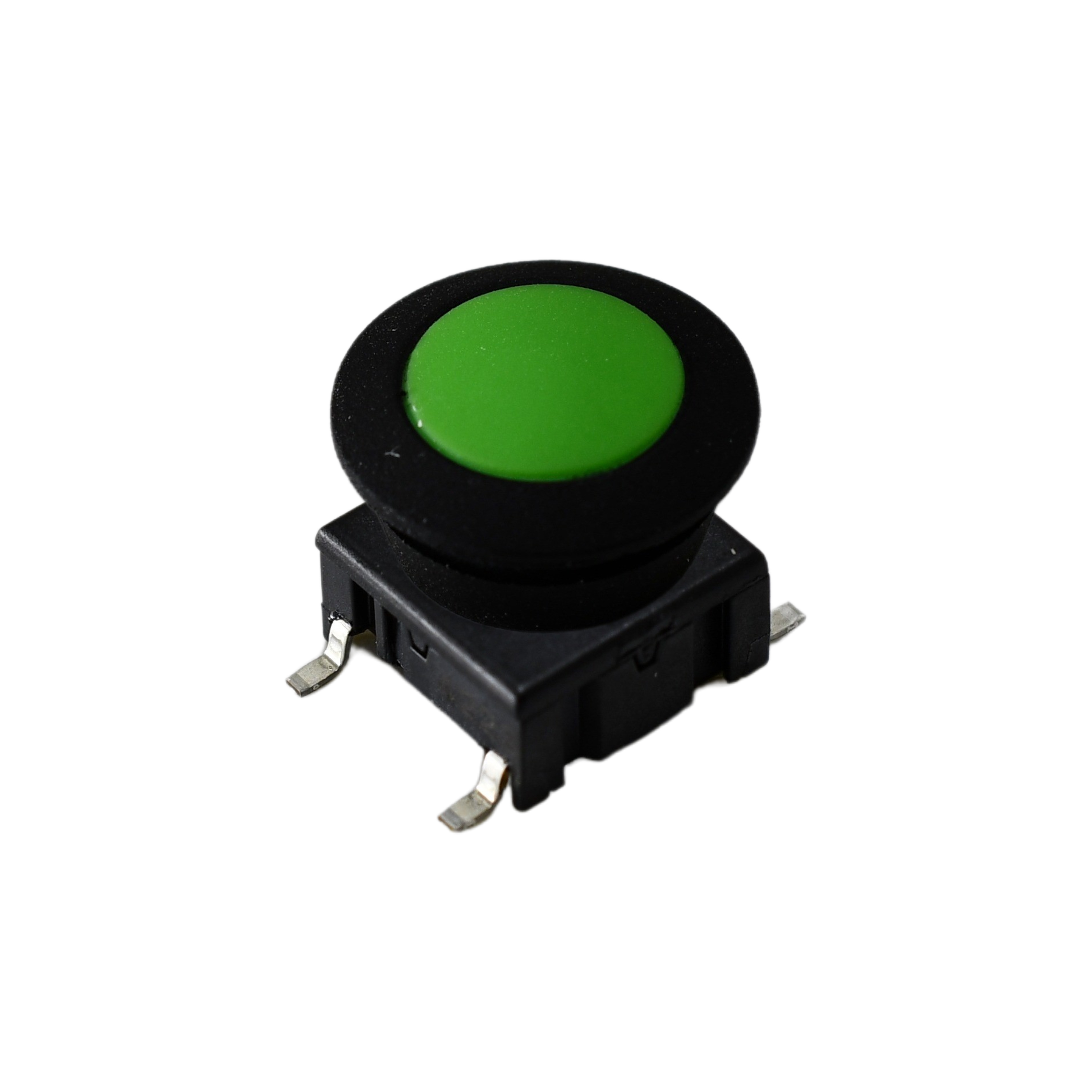 This is IP67 Cap Tactile Switch SPST 50mA Surface Mount manufactured by MEC. The manufacturer part number is 5ESH935+1SS09-12.0+AQW0902. The actuator is a 12mm long. The product is available in surface mount configuration. It is IP rated with ip67. The contact is equipped with spst configuration. The product carries round button actuator. The actuator has an adorable black/green colour. It provides push to make switch operation.