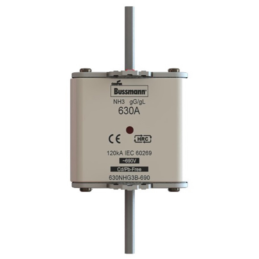 This is manufactured by Eaton. The manufacturer part number is 400NHG3B-690. The product has a gg application category. The product has a current rating of 400a. The fuse dimensions of the product is 76 x 71.2 x 68.7mm . Moreover, the product has a nominal 690v ac voltage rating. A fuse with a nh3 size. It has an overall length of 150mm. Its body length is 76mm. Its body height is 68.7mm. The fuse complies with din 43620, iec 60269 standards. Its overall body width is 71.2mm . It has typical 5 weeks of manufacturer standard lead time. The product's diameters include 2.953" l x 2.953" w x 3.071" h (75.00mm x 75.00mm x 78.00mm). The splendid features of the product include indicating. The product is available in holder configuration. The product exhibits 690v of AC voltage rating. The product complies with ce, vde. It is available in the standard package of 3. Its typical moisture sensitivity level is 1 (unlimited). In addition, bulk is the available packaging type of the product. The product is widely employed in industrial, motor protection, solar (photovoltaic). It has a 475000 melting I²t. It integrates a square fuse type. Moreover, the product comes in rectangular, blade. Whereas, the breaking capacity of the product at rated voltage is 120ka. Class Information: nh. The eaton's product offers user-desired applications.