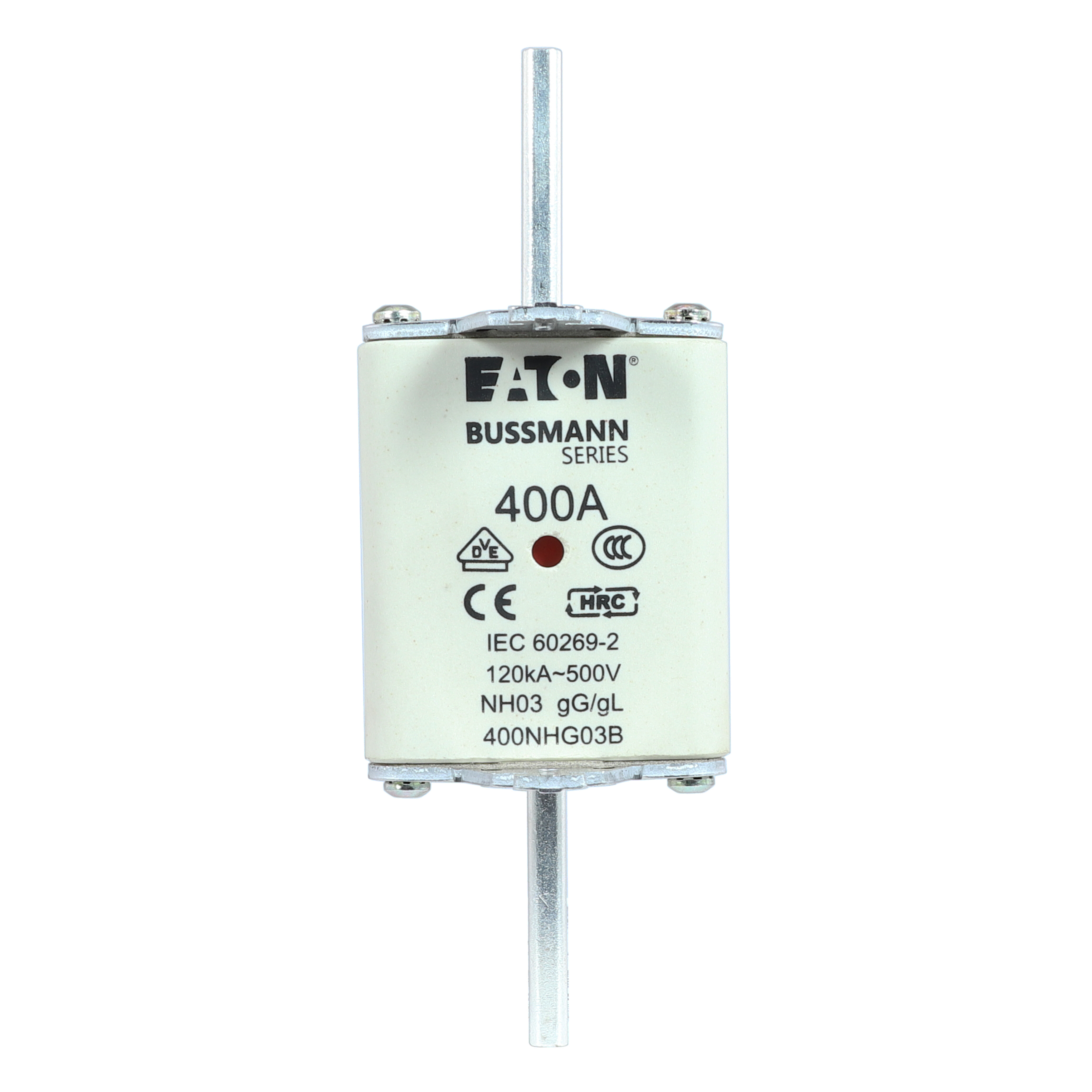 This is manufactured by Eaton. The manufacturer part number is 400NHG03B. The product has a gg - gl application category. The product has a current rating of 400a. Moreover, the product has a nominal 500v ac voltage rating. A fuse with a nh03 size. It has an overall length of 150mm. Its tag is 6mm wide . Its body length is 75mm. Moreover, it has a high rupture capacity yes . Its body height is 61mm. The fuse complies with din 43620-1, din 43620-3, iec 60269, vde 0636 standards. Its overall body width is 60mm . It has typical 5 weeks of manufacturer standard lead time. The product's diameters include 2.953. The splendid features of the product include indicating. The product is available in holder configuration. The product exhibits 500v of AC voltage rating. The product complies with vde. It is available in the standard package of 3. Its typical moisture sensitivity level is 1 (unlimited). In addition, bulk is the available packaging type of the product. The product is widely employed in electrical, industrial. It has a 642900 melting I²t. It integrates a square fuse type. Moreover, the product comes in rectangular, blade. 250v of DC voltage rating. It responds within fast. Whereas, the breaking capacity of the product at rated voltage is 120ka. Class Information: nh. The eaton's product offers user-desired applications.