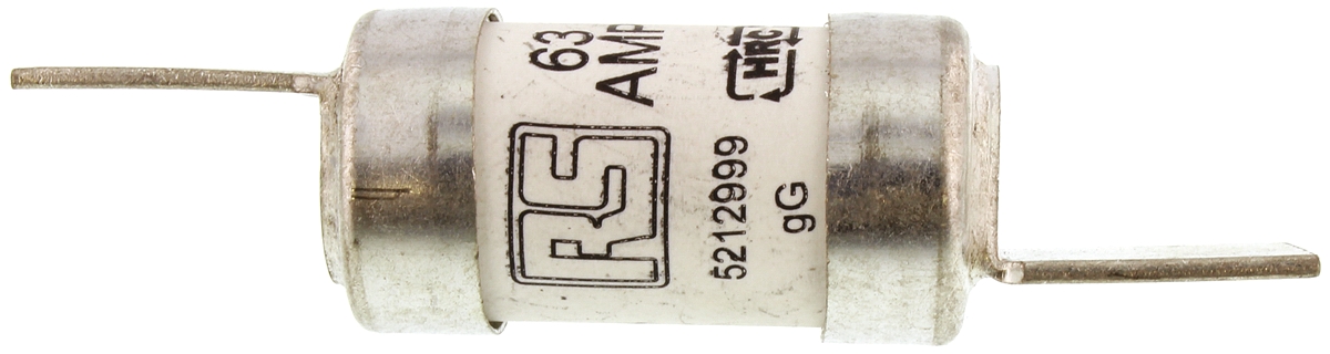 This is 63A F2 British Standard Fuse gG 415V ac HRC manufactured by RS Pro. The manufacturer part number is 521-2999. It has a blade type tag . Concerning body diameter, it is 17.5mm. The product has a gg application category. The product has a current rating of 63a. The fuse dimensions of the product is 17.5 x 67mm . Moreover, the product has a nominal 415v ac voltage rating. The product esd, is a highly preferred choice for users. A fuse with a f2 size. Its tag is 12.7mm wide . Its body length is 35.5mm. Moreover, it has a high rupture capacity yes . Its body height is 35.5mm. The fuse complies with bs 88, iec 269-1 standards. It has an overall length of 67mm.