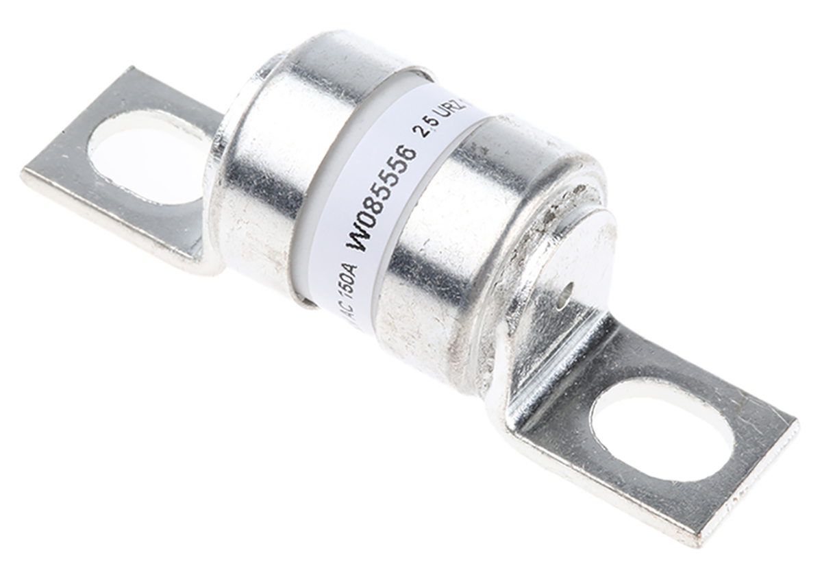 This is 150A British Standard Fuse aR 250V ac manufactured by Mersen. The manufacturer part number is W085556. It has a bolted type tag . Concerning body diameter, it is 18mm. The product has a ar application category. The product has a current rating of 150a. Moreover, the product has a nominal 250v ac voltage rating. It has a typical 38 → 42.8mm fixing centres . A fuse with a 17 x 27mm size. Its tag is 12.7mm wide . Moreover, its tag orientation is offset . Moreover, it has a high rupture capacity yes . Its body height is 24.4mm. The fuse complies with bs 88-4 standards. It has an overall length of 54.4mm.
