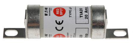 This is Cooper Bussmann 20A British Standard Fuse A2 660V ac 73mm manufactured by Eaton Bussmann Series. The manufacturer part number is TIA20. It has a bolted type tag . Concerning body diameter, it is 22.2mm. The product has a gg application category. The product has a current rating of 20a. The fuse dimensions of the product is 22 x 86mm . Moreover, the product has a nominal 660v ac voltage rating. It has a typical 73mm fixing centres . A fuse with a a2 size. Its tag is 8.7mm wide . Moreover, its tag orientation is offset . The fuse has a robust t speed. Its body height is 56.4mm. The fuse complies with bs 88-2, iec 269-2 standards. Moreover, it has a high rupture capacity yes . It has an overall length of 85.5mm.