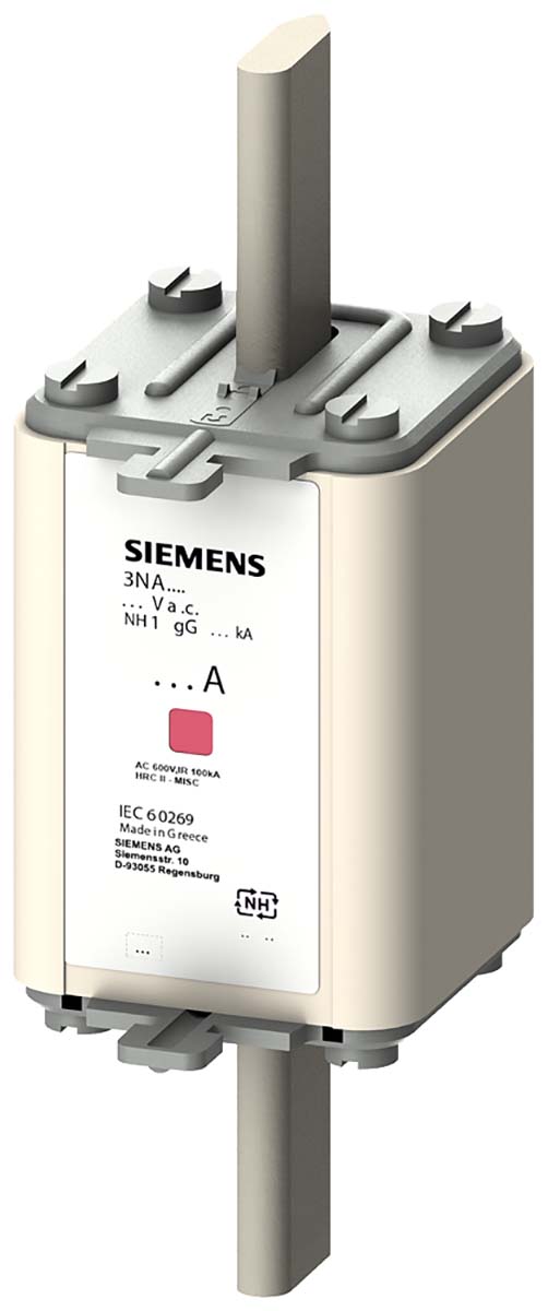 This is 250A NH1 Fast Acting Fuse HRC Centred Tag Fuse gG 500V ac manufactured by Siemens. The manufacturer part number is 3NA7144. It has a blade type tag . The product has a gg application category. The product has a current rating of 250a. Moreover, the product has a nominal 500v ac voltage rating. A fuse with a nh1 size. It has an overall length of 133.9mm. Moreover, its tag orientation is centred . Its body length is 68.5mm. The fuse has a robust f speed. The fuse complies with iec 60269 standards. Its overall body width is 46.6mm .