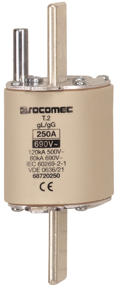 This is 315 S2 NH Centred Tag Fuse gG manufactured by Socomec. The manufacturer part number is 68720315. The product has a gg application category. A fuse with a s2 size. The product has a current rating of 315. The fuse complies with iec 60269 standards.
