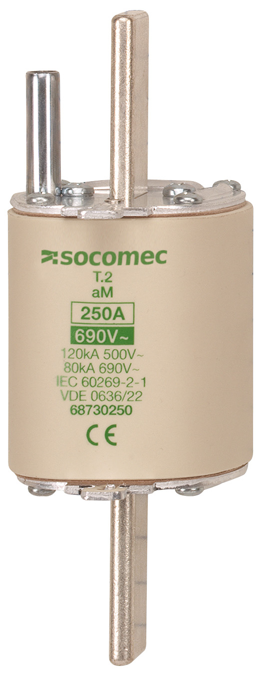 This is 200 S2 NH Centred Tag Fuse aM manufactured by Socomec. The manufacturer part number is 68730200. The product has a am application category. A fuse with a s2 size. The product has a current rating of 200. The fuse complies with iec 60269 standards.