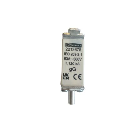 This is 63A Fast Acting Fuse NH Centred Tag Fuse gG 415V ac manufactured by RS PRO. The manufacturer part number is 221-3679. It has a blade type tag . The product has a gg application category. The product has a current rating of 63a. Moreover, the product has a nominal 415v ac voltage rating. The product lspn, is a highly preferred choice for users. A fuse with a nh000 size. It has an overall length of 78.5mm. Moreover, its tag orientation is centred . Its body length is 54mm. The fuse has a robust f speed. The fuse complies with iec 60269-2 standards. Its overall body width is 21mm .