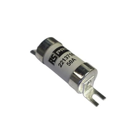 This is 50A Bolted Tag Fuse A3 690V ac 73mm manufactured by RS PRO. The manufacturer part number is 221-3717. It has a bolted type tag . Concerning body diameter, it is 22mm. The product has a gg, gm application category. The product has a current rating of 50a. Moreover, the product has a nominal 690v ac voltage rating. The product ssa, is a highly preferred choice for users. A fuse with a a3 size. It has a typical 73mm fixing centres . Its tag is 9mm wide . Moreover, its tag orientation is offset . Its body length is 49mm. The fuse complies with iec 60269-2/bs 88-2 standards. It has an overall length of 86mm.