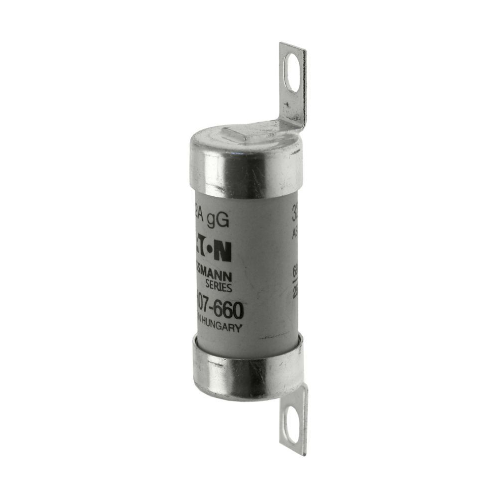 This is 32A Bolted Tag Fuse A2 660 V ac 250V dc 73mm manufactured by Eaton. The manufacturer part number is 32H07-660. It has a bolted type tag . Concerning body diameter, it is 22mm. The product has a gg application category. The product has a current rating of 32a. The fuse dimensions of the product is 84 x 23 x 23mm . Moreover, the product has a nominal 690v voltage rating. The product eaton bussmann, is a highly preferred choice for users. A fuse with a a2 size. It has a typical 73mm fixing centres . Its tag is 8.7mm wide . Moreover, its tag orientation is offset . Its body length is 52mm. Moreover, it has a high rupture capacity yes . The fuse complies with bs88, iec 60269 standards. It has an overall length of 84mm.